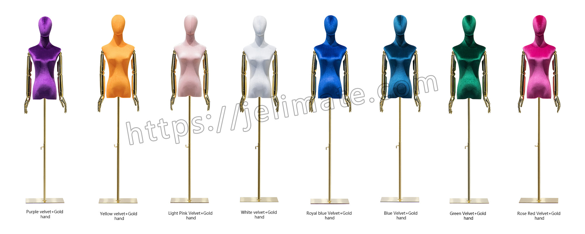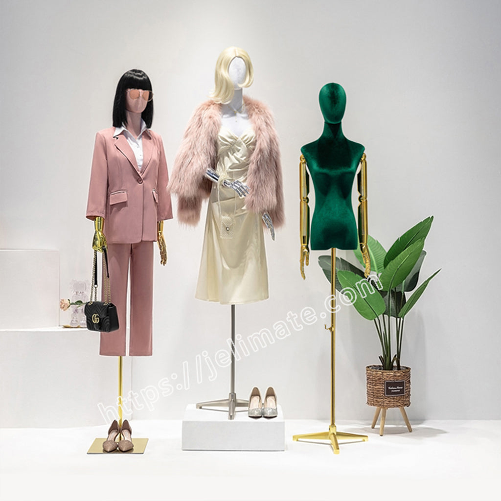 Personalized 99 colors velvet gold square base gold flexible arms female dress form JELIMATE