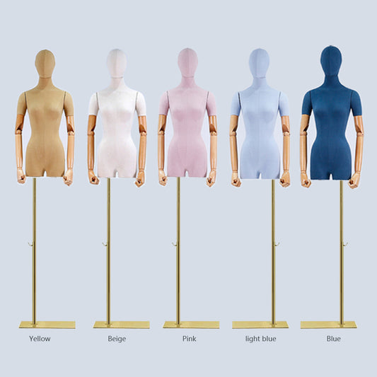 JELIMATE | Half Body Mannequin Female - Velvet Fabric Torso Mannequin with Stand & Gold/Silver Hands