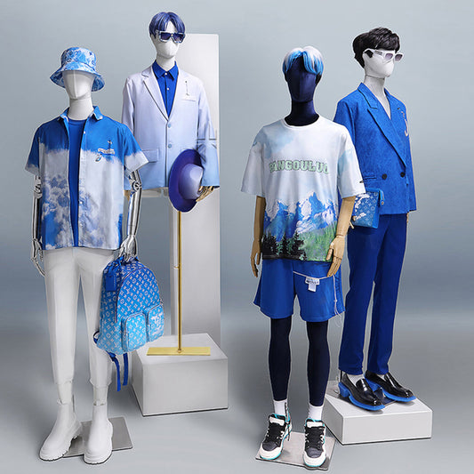 The male display mannequins come in various fabrics,including linen fabric,suede fabric,satin fabric,velvet fabric and so on