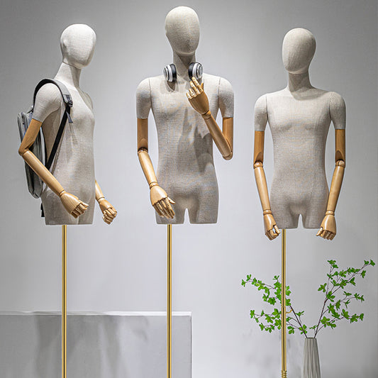 New Linen Fabric Window Display Half Body Mannequin Female & Male Torso, Ideal for Mannequin Top Styling