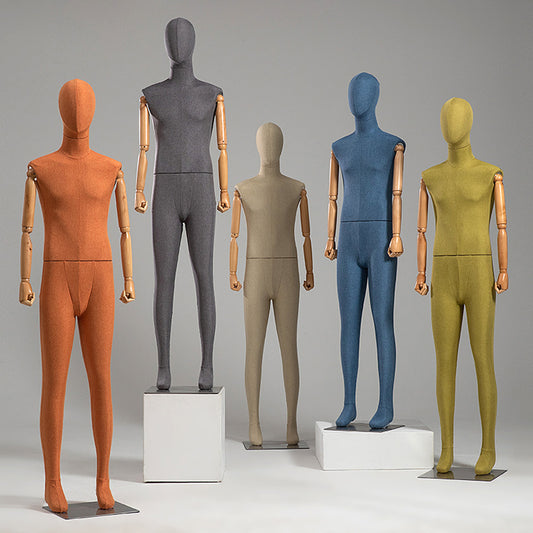 Jelimate High Quality Full Body Adult Male Mannequin,Colorful Linen Fabric Men Dress Form Model,Manikin Torso With Wooden Arms Clothing Display Mannequin