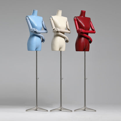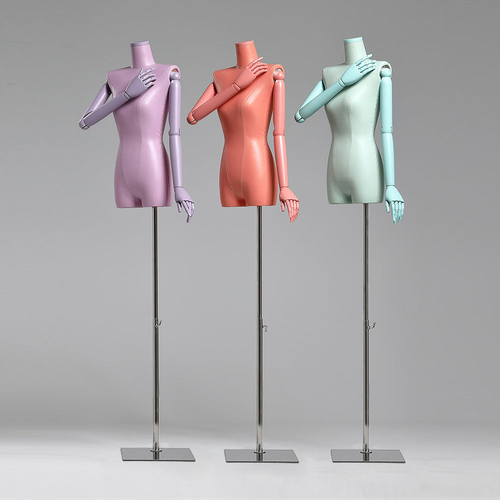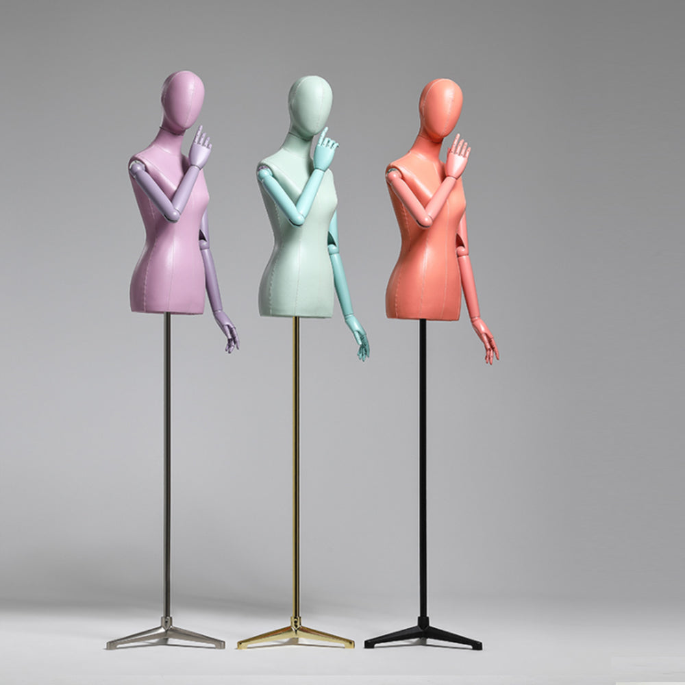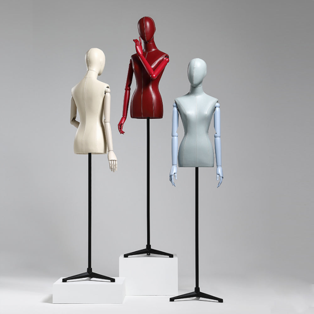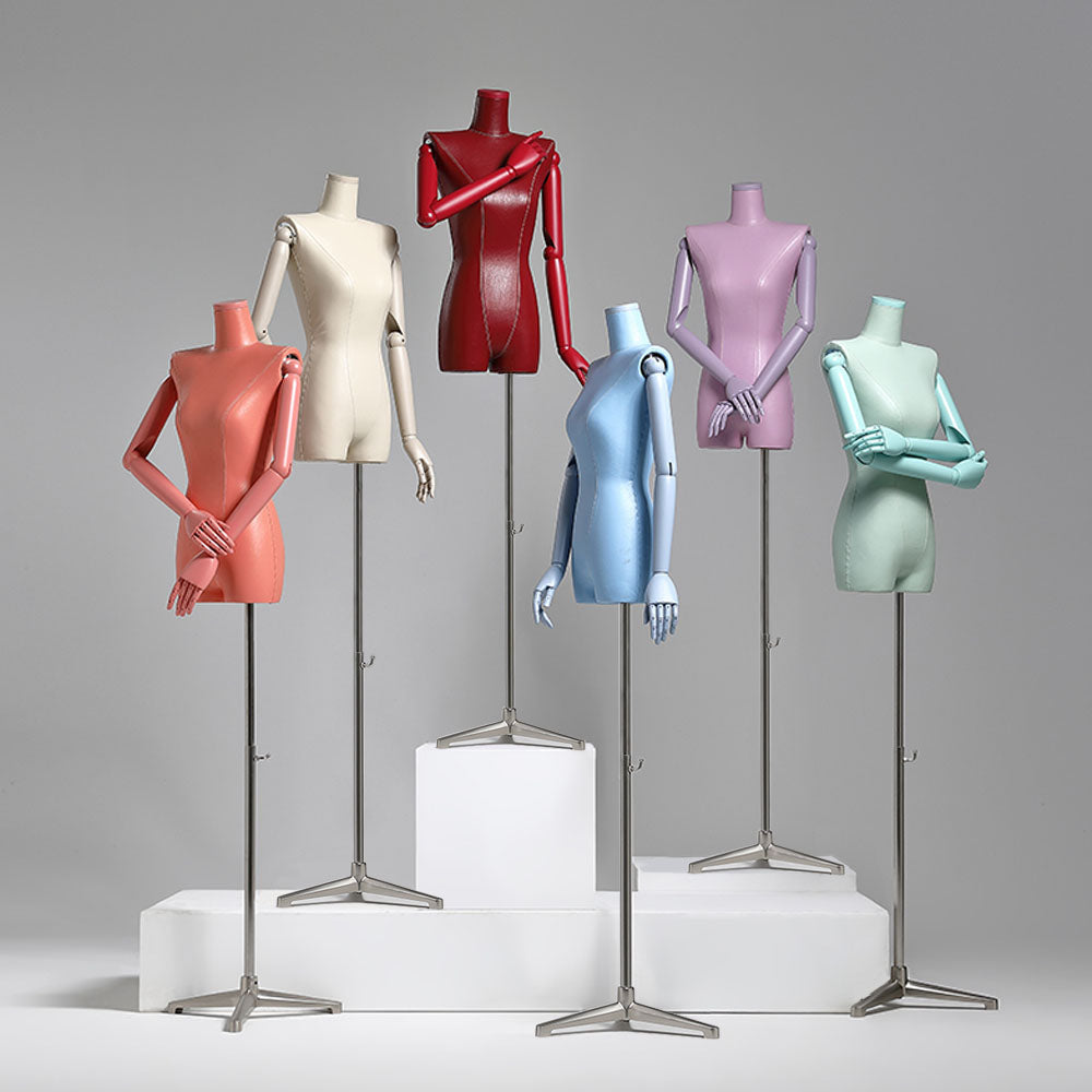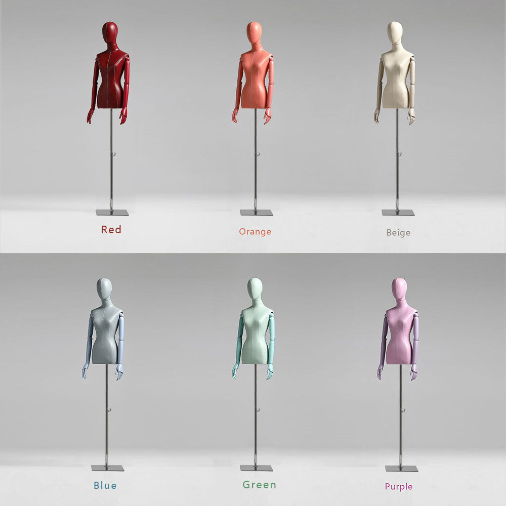 The product is Clothing Boutique Store Fashion Window Colorful Leather Mannequin Half Body Dress Form,with detachable mannequin head and detachable wooden mannequin arms,have multi colors for u chioce,also have mannequin with head and mannequin without head two style to meet your different display require,the design are very delicate and creative, use it to dress up your store can grab customer's attention,use it to dress up your window can make your window become more attractive and gorgeous,use it to dress up your works can present perfect display effect, also can use it to display your products in a window, on a counter, on a display shelf,on the trade show or on the floor,Ideal for sweaters, T-shirts, jackets, dresses, coat,blouses,suits, pants,trousers,clothing accessories,tops and bottoms.