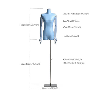 👏3.Size: Shoulder Width : 36 cm( 14.2 inch ),Bust : 78 cm(30.7 inch) ,Waist : 58.5 cm(23 inch),Hip : 80 cm(31.5 inch), Body Height : 76 cm (29.9 inch),Base Height : 125 cm( 49.2 inch ),Base Wide : 40 cm( 15.7 inch ),Adjustable Total Height : 132-200 cm( 51.9-78.7 inch ).