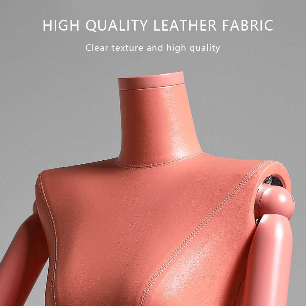 Jelimate Luxury Window Leather Half Body Female Dress Form Mannequin Upper Body Silver Square Base Women Clothing Display Mannequin Torso with Wooden Hand