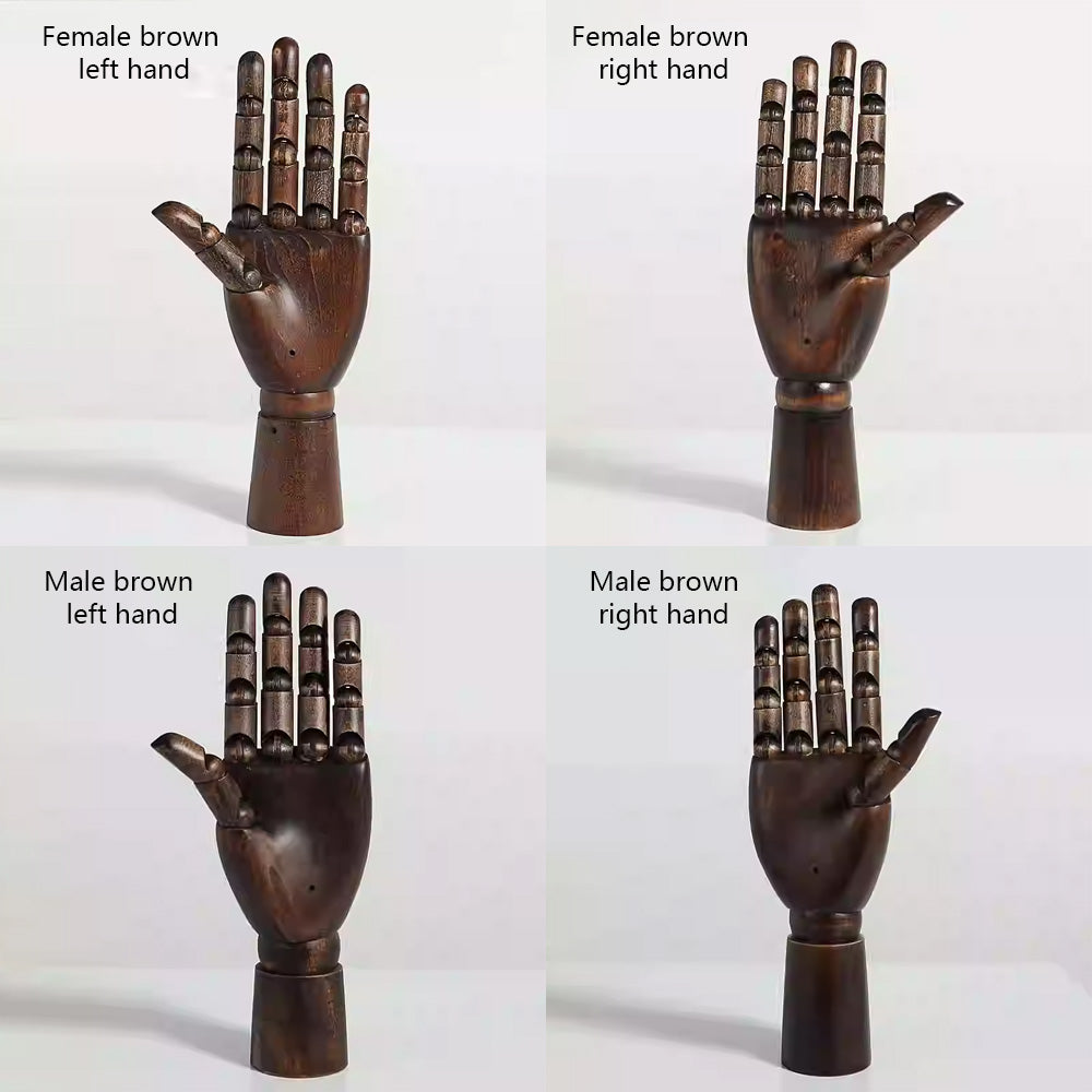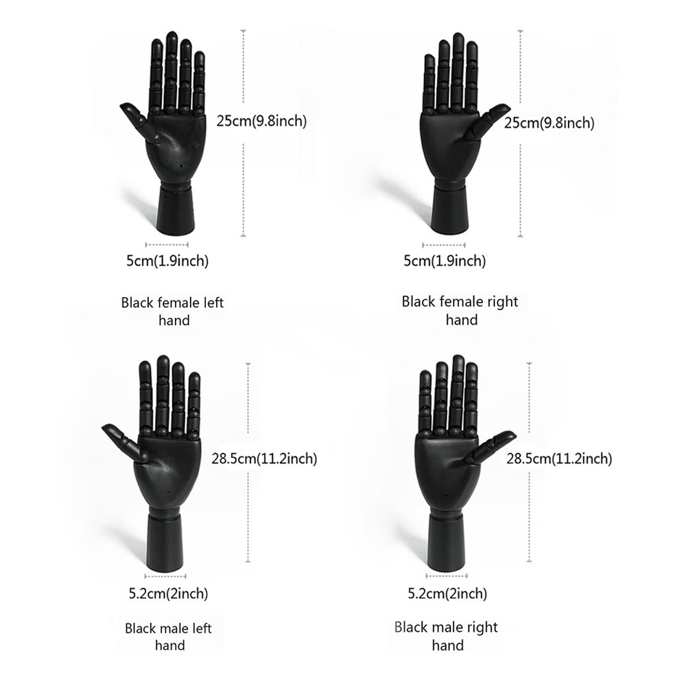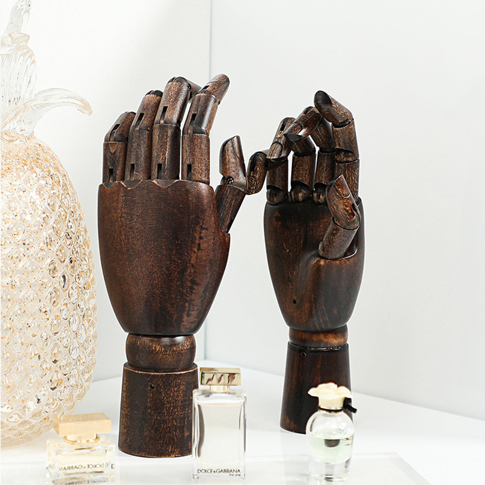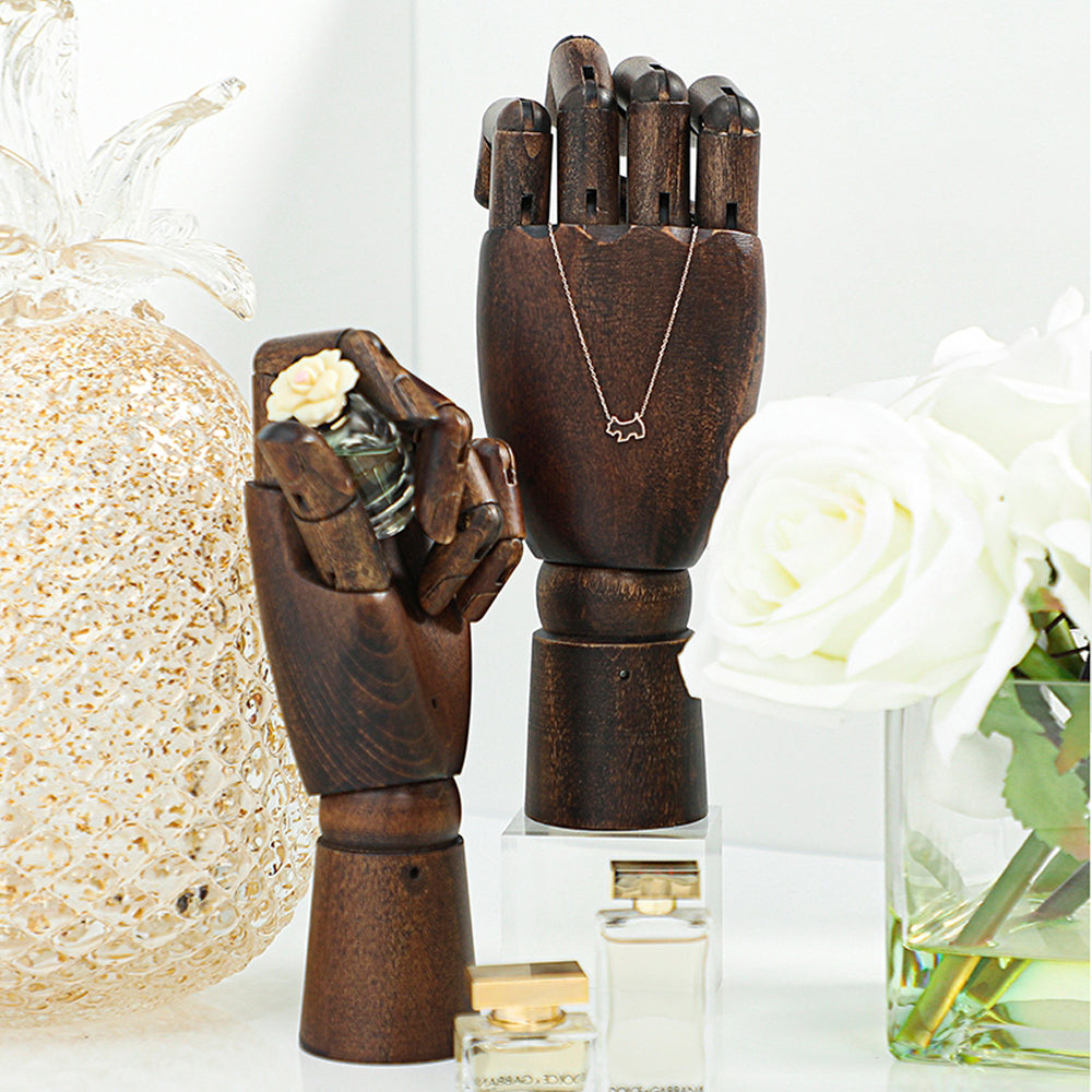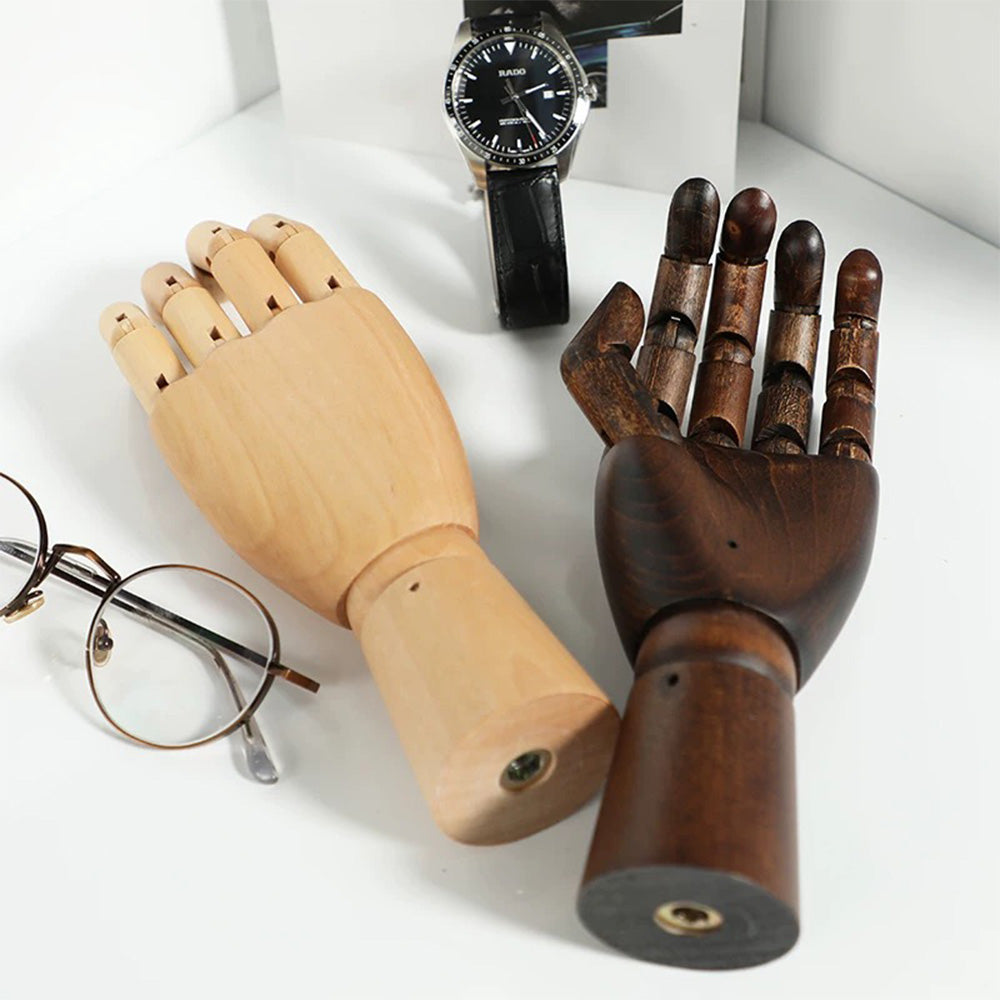 Our premium wooden mannequin hands, available in both left and right options, are expertly crafted from high-quality solid wood. Designed with flexible, movable fingers, these hands are perfect for showcasing rings, bracelets, watches, and other accessories in retail store windows, jewelry displays, or photography setups. Available in a range of colors, they add a customizable, elegant touch to your display while offering durability and precise craftsmanship. Whether you're looking to enhance a boutique setting or create dynamic photo compositions, these versatile wooden hands are a stylish and practical choice.