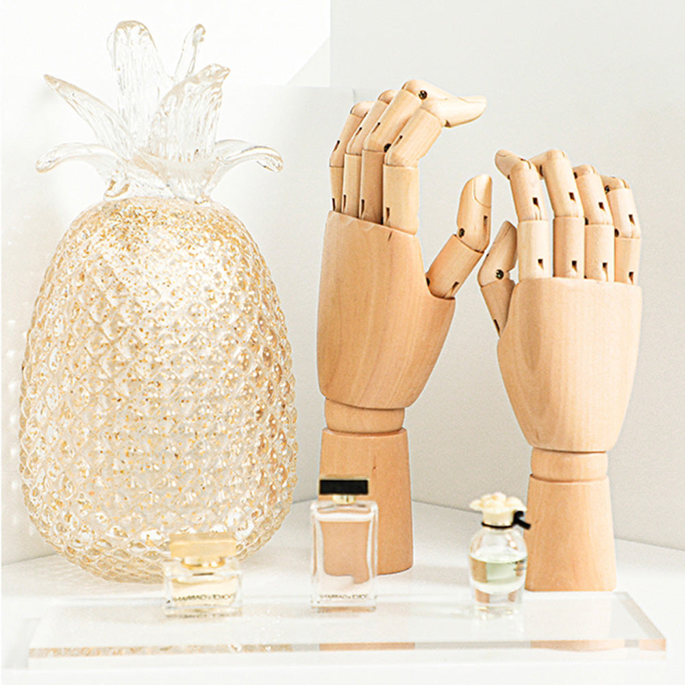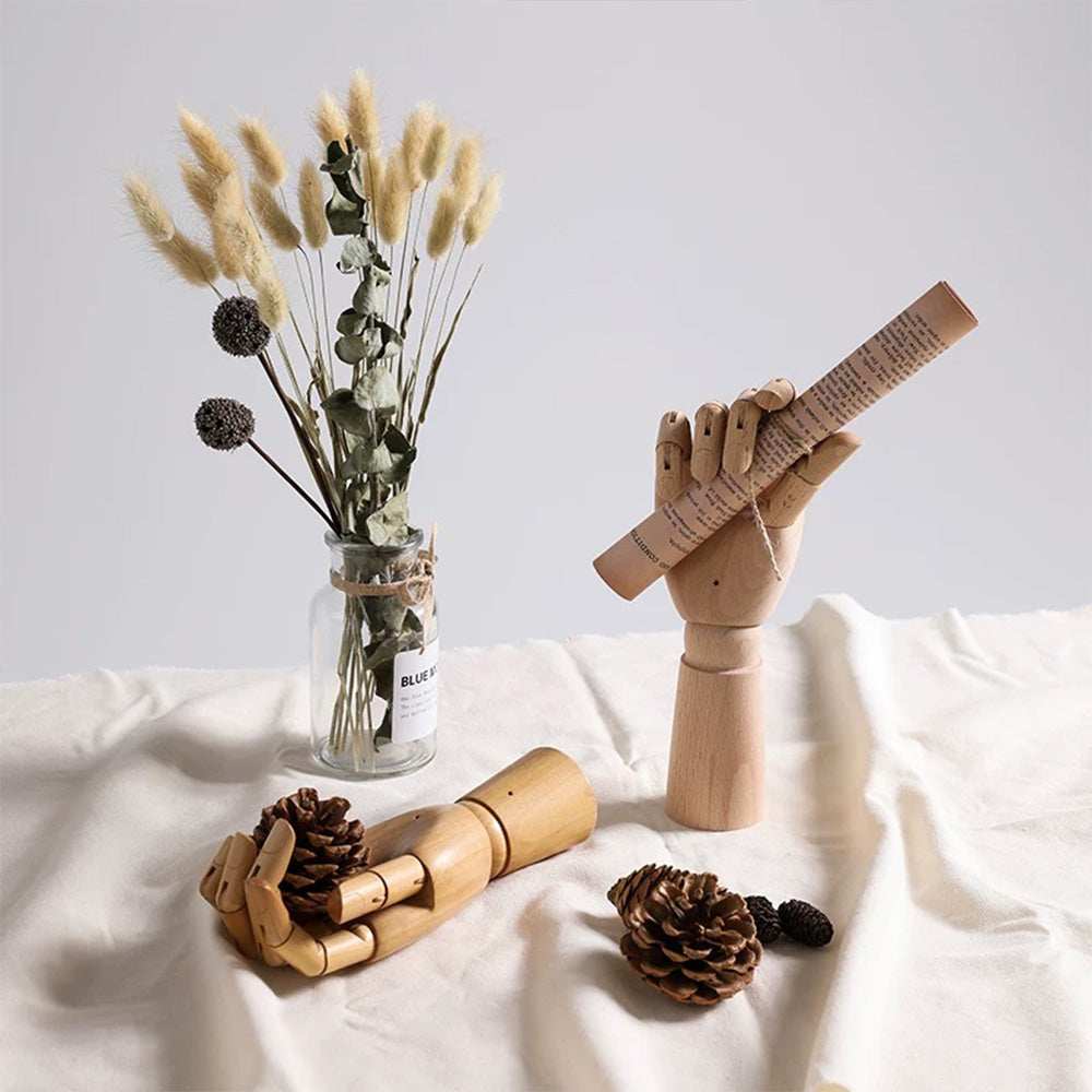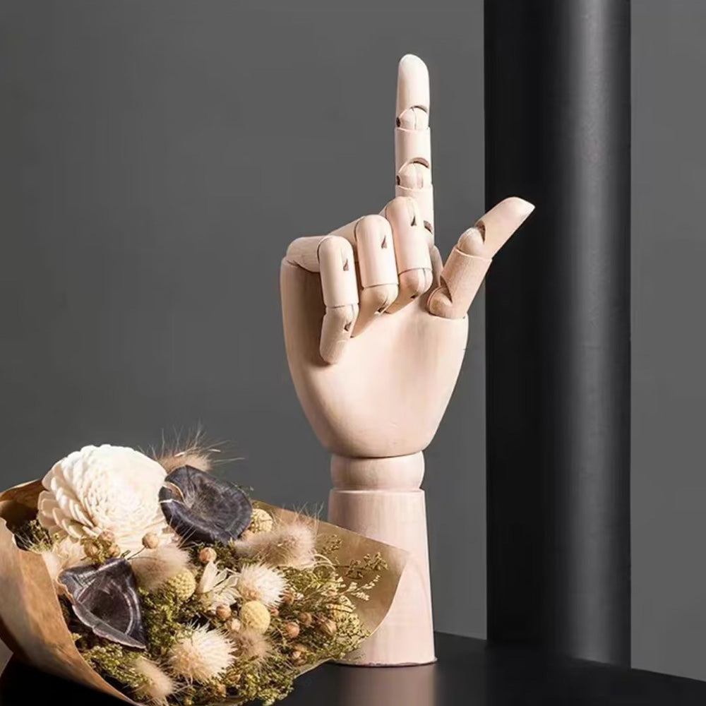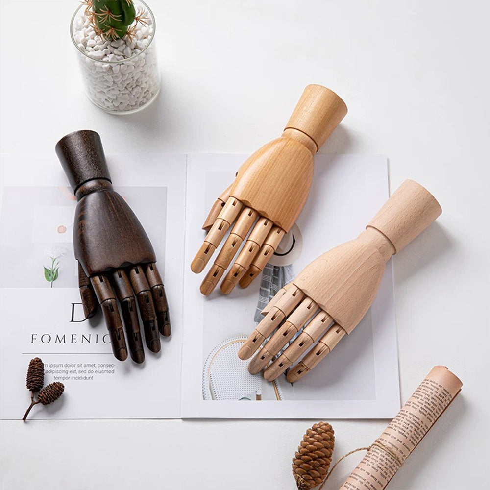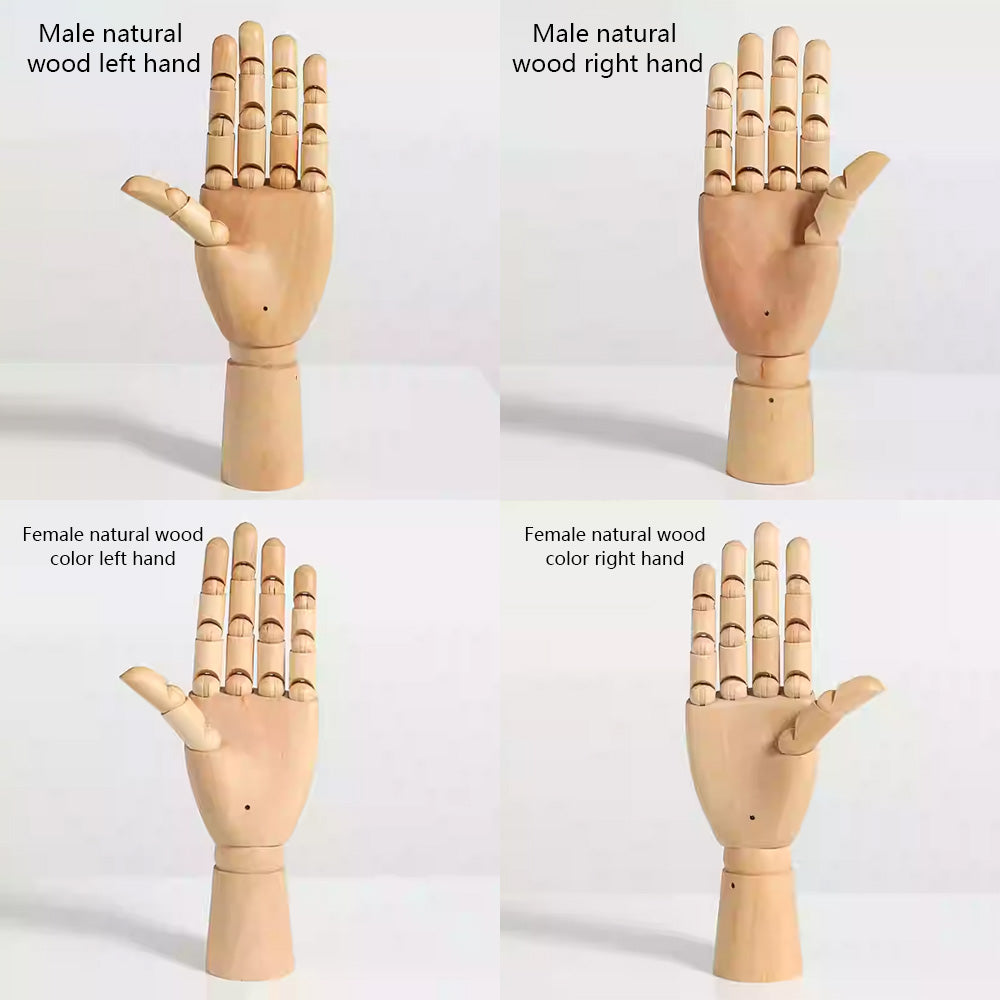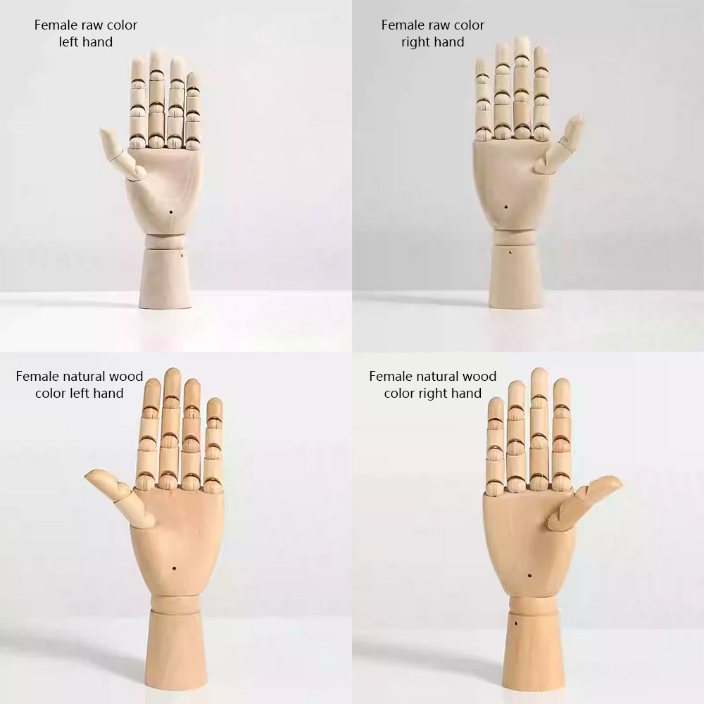 Our premium wooden mannequin hands, available in both left and right options, are expertly crafted from high-quality solid wood. Designed with flexible, movable fingers, these hands are perfect for showcasing rings, bracelets, watches, and other accessories in retail store windows, jewelry displays, or photography setups. Available in a range of colors, they add a customizable, elegant touch to your display while offering durability and precise craftsmanship. Whether you're looking to enhance a boutique setting or create dynamic photo compositions, these versatile wooden hands are a stylish and practical choice.