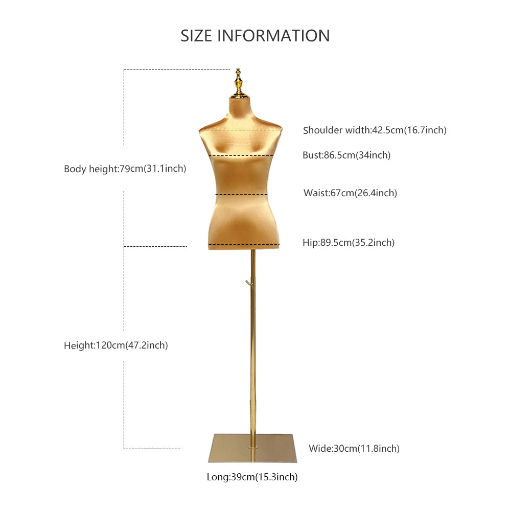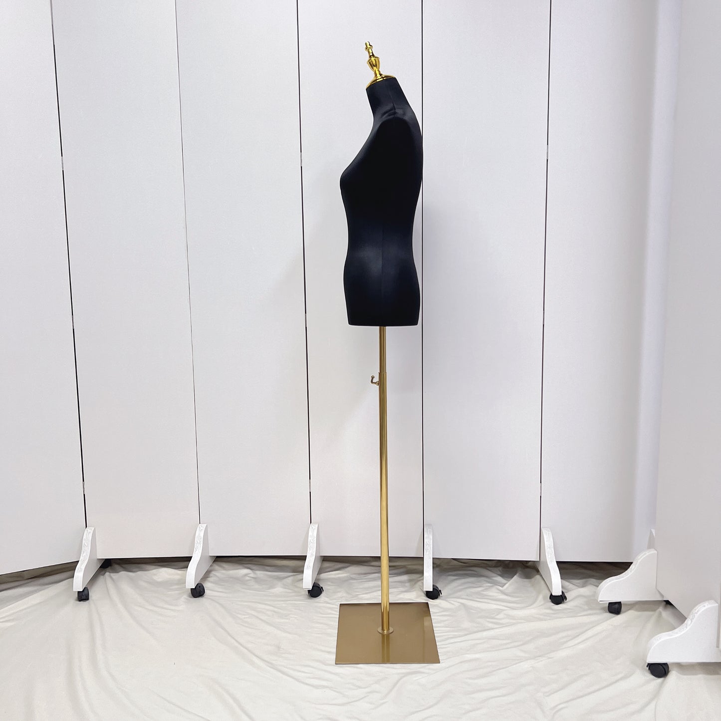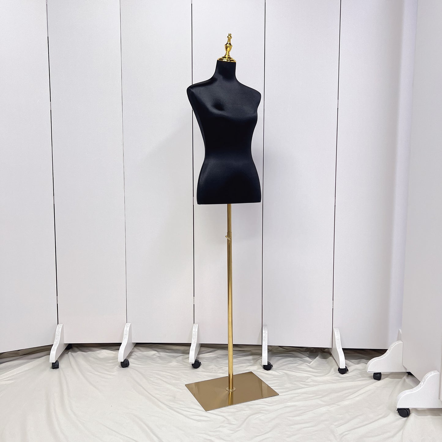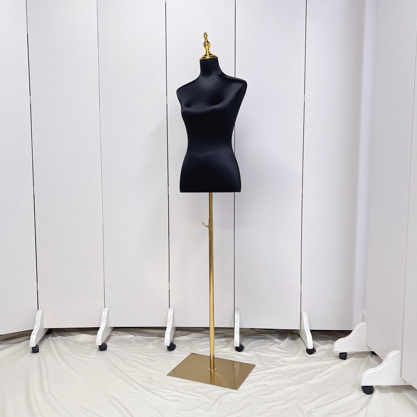 🔥1).Introducing our premium female half body mannequin, crafted with satin fabric and set on an elegant gold square base. Available in versatile colors like white, black, grey, and rose gold, this mannequin is perfect for showcasing apparel in boutique clothing stores and window displays. The soft satin covering not only enhances the mannequin’s appearance but also provides a delicate backdrop that allows garments to shine. The sturdy gold base ensures stability, offering both practicality and a modern, high-end look. Elevate your boutique's visual merchandising with this exquisite mannequin, designed to bring a touch of luxury to your store displays.