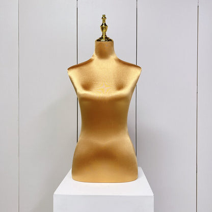 Jelimate Clearance Satin Female Half Body Mannequin,Women Silk Dress Form Adjustable Clothing Display Model,Female Display Mannequin Torso with Gold Base
