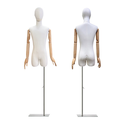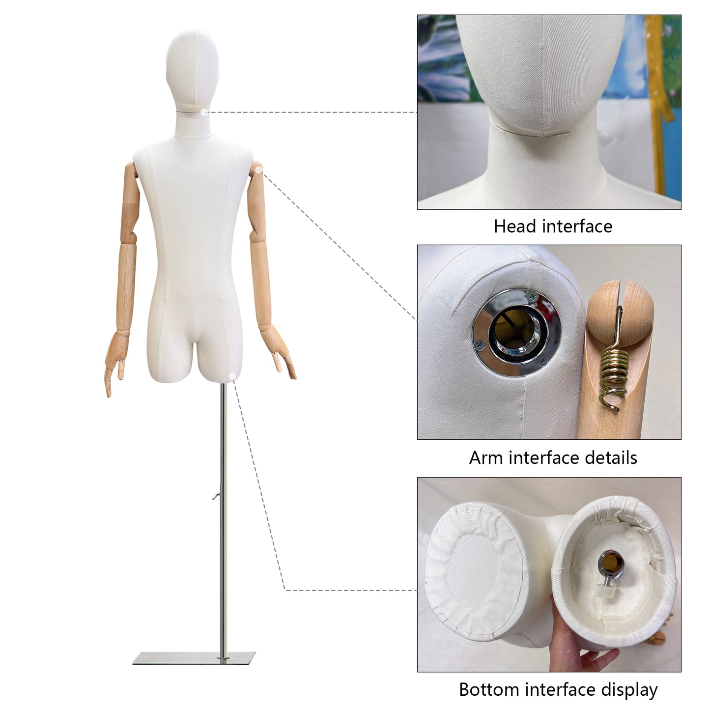 Jelimate Shop Window Adult Male Mannequin Torso Dress Form,Beige Natural Canvas Mannequin With Wooden Arms,Fashion Men Model Suit Clothing Display Dummy