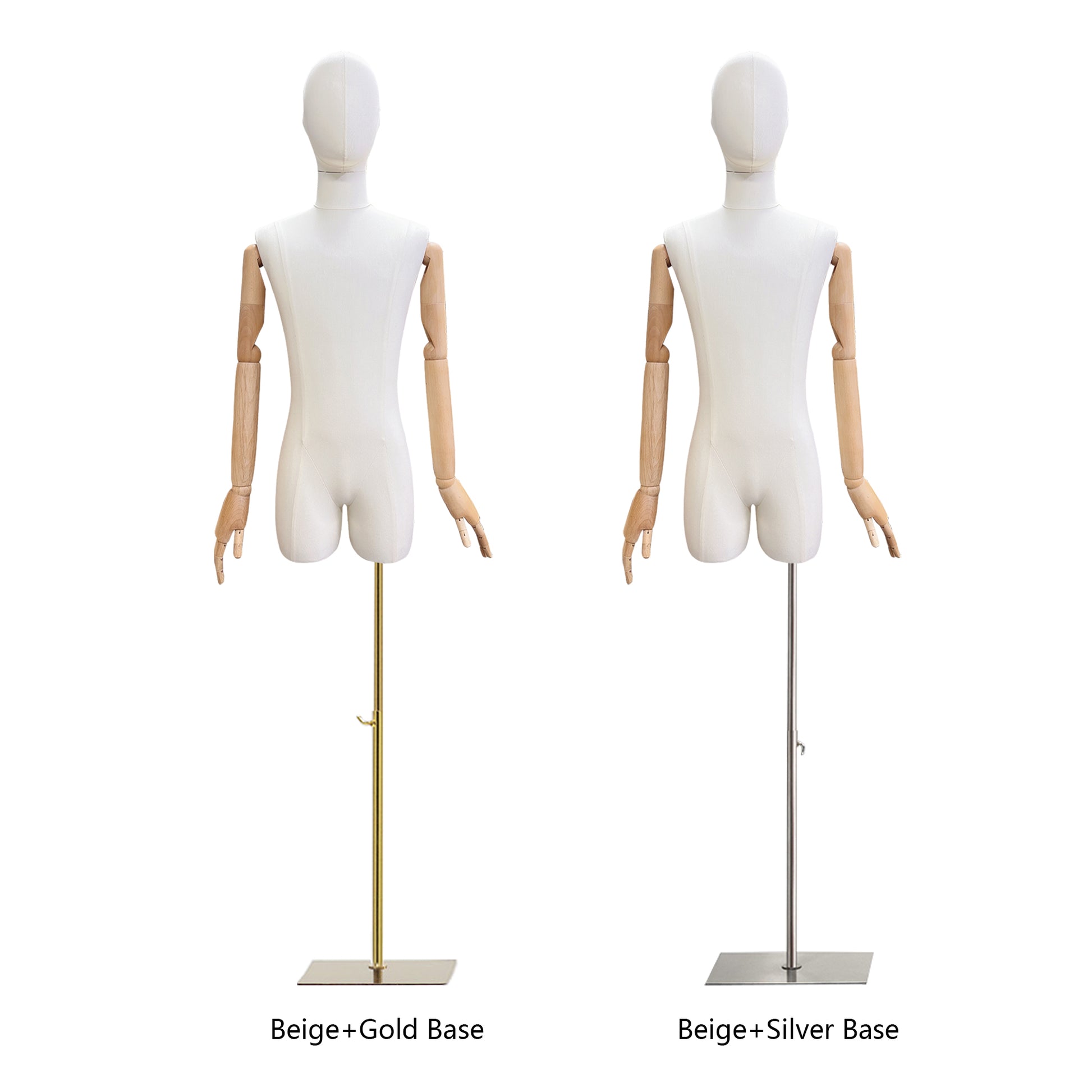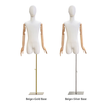 💖Style B: Half Body Mannequin Body+Head +Wooden Arms+ Gold Square Base;