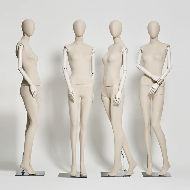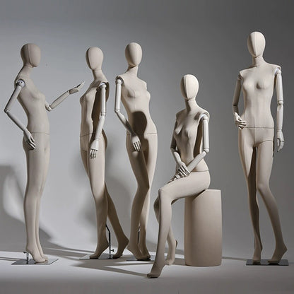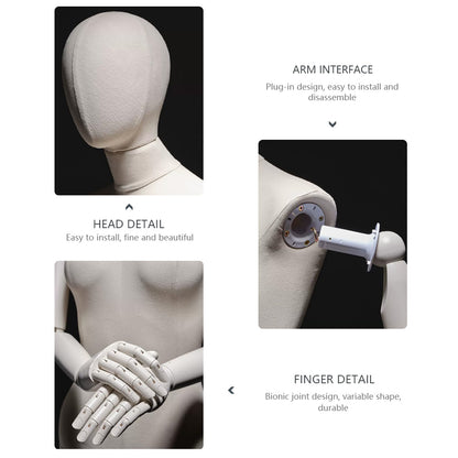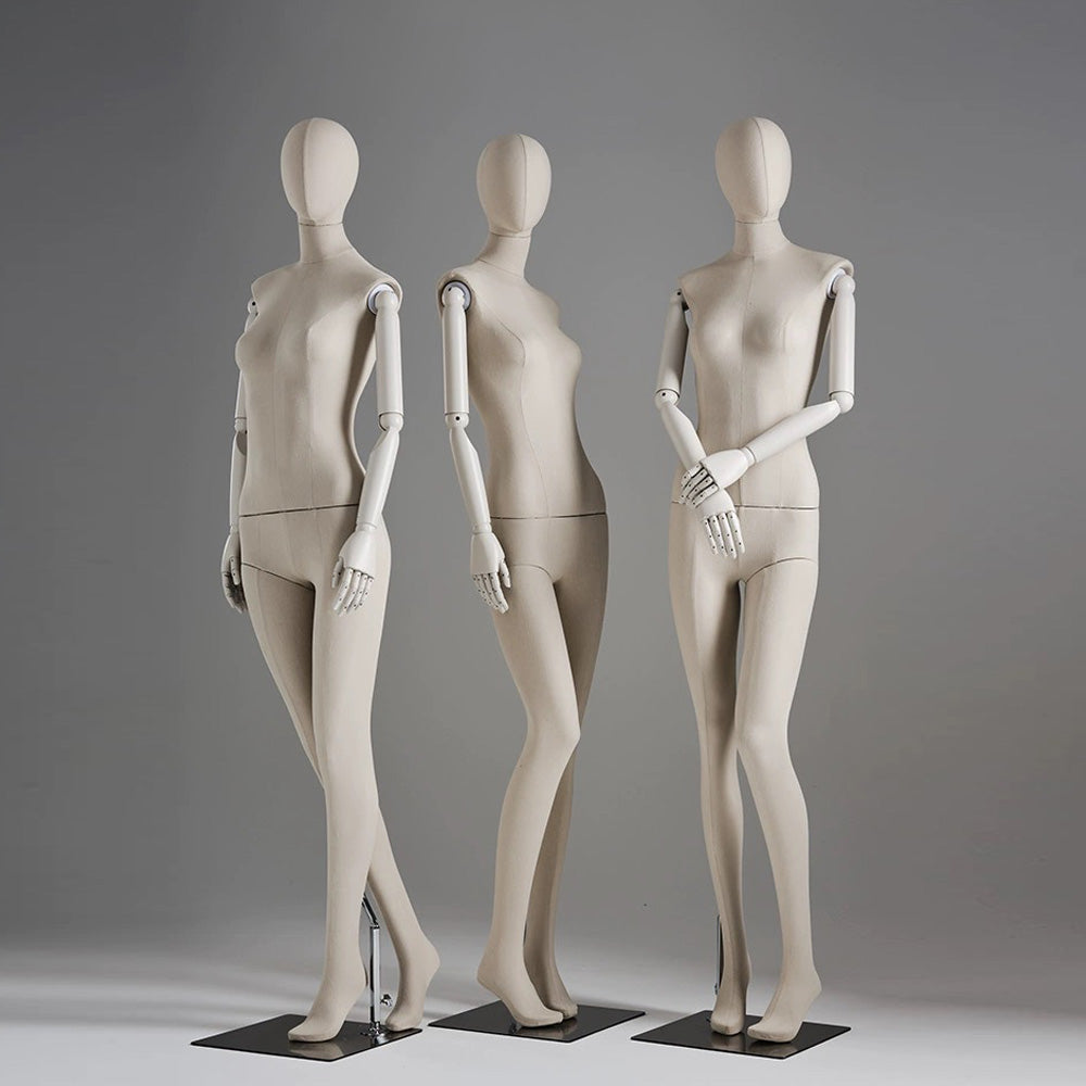 Jelimate Luxury Female Velvet Display Mannequin Full Body,Fabric Wrapped Grey White Dress Form With Wooden Arms,Women Dress Form Clothing Display Model