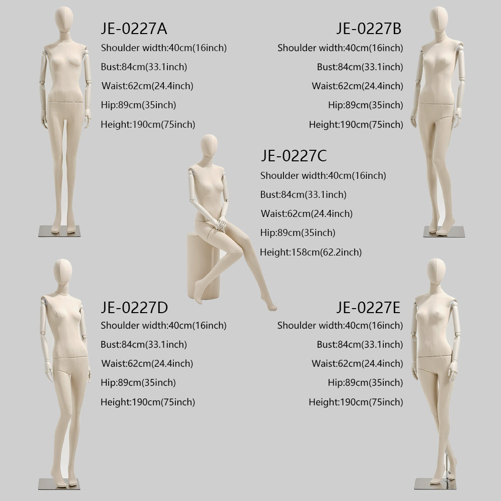 💖JE-0227A-B Or D-E : Shoulder Width : 40 cm(16 inch),Bust : 84 cm(33.1 inch) ,Waist : 62 cm(24.4 inch),Hip : 89 cm(35 inch),Height : 190 cm( 75 inch) ;