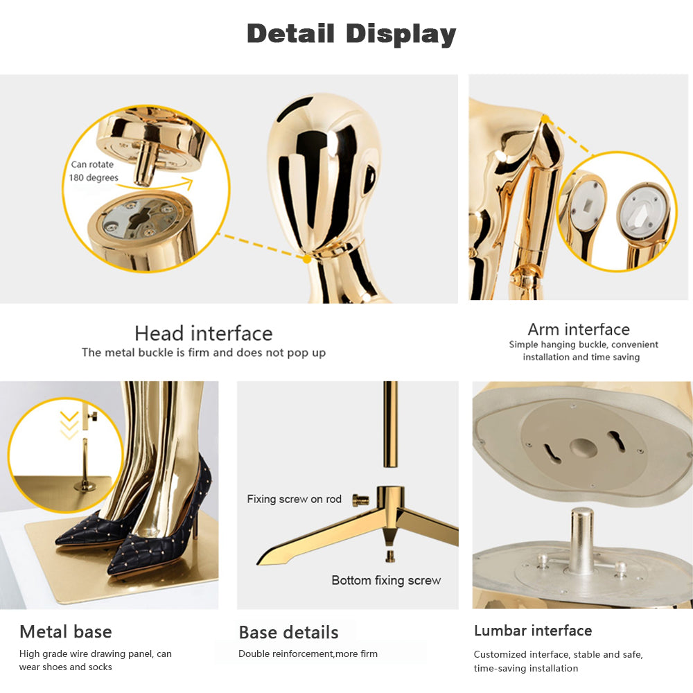👏2).This luxury female electroplated mannequins are available in stunning gold and silver finishes, designed to reflect sophistication and modern style.The electroplated coating not only enhances the mannequin’s shine but also provides a long-lasting, smooth surface that’s resistant to wear, making it the ideal display option for any high-end fashion boutique or stylish home decor.