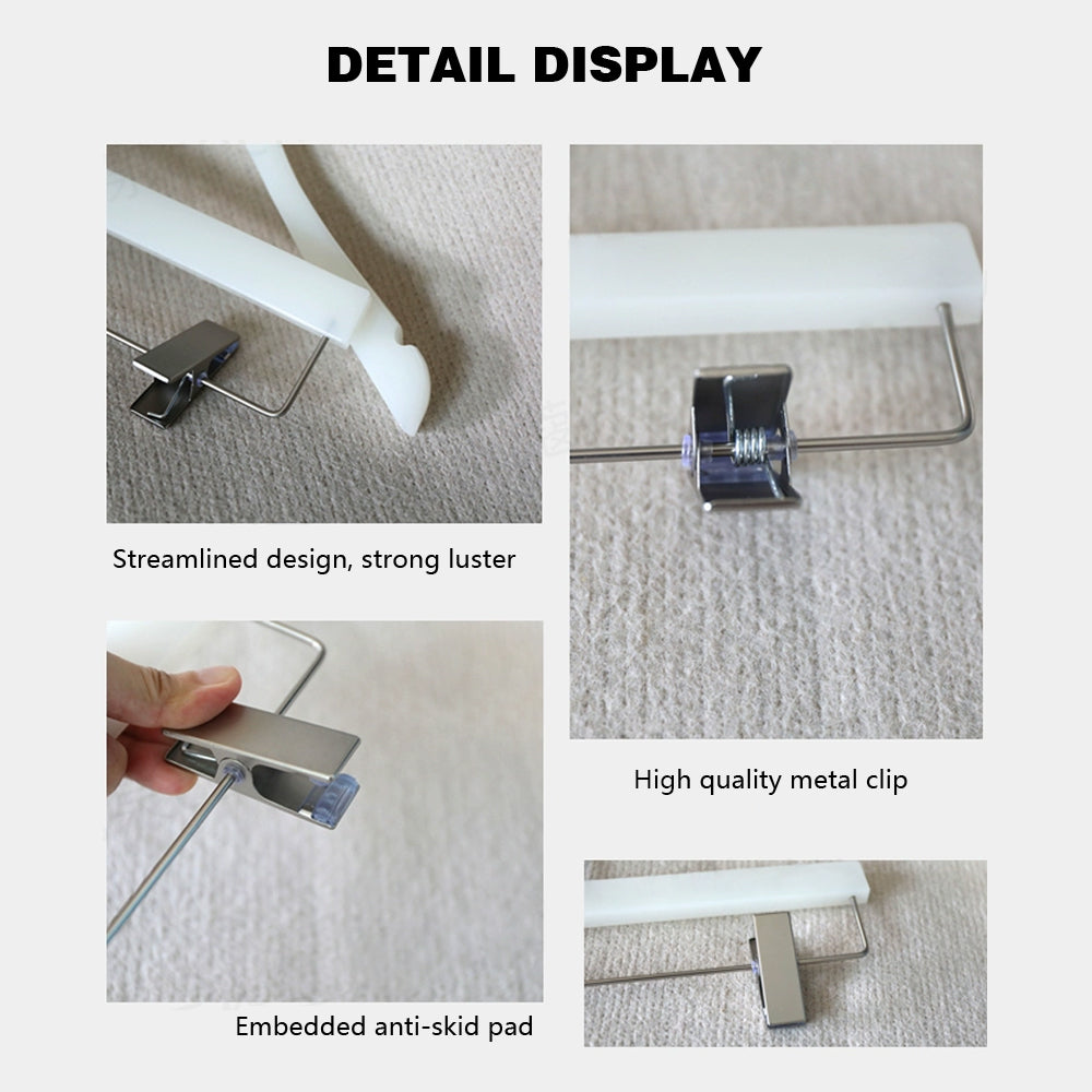 👏4.Non-slip and traceless, widened and non-slip, imitating shoulder curves to hang clothes without bagging.High-quality inner clip with built-in anti-slip soft pads, leaving no marks when clipping clothes.The surface of the material is smooth and without burrs. It is smooth and polished and does not hurt the clothes. The hook can be rotated, which is convenient and practical. It is more capable of loading.