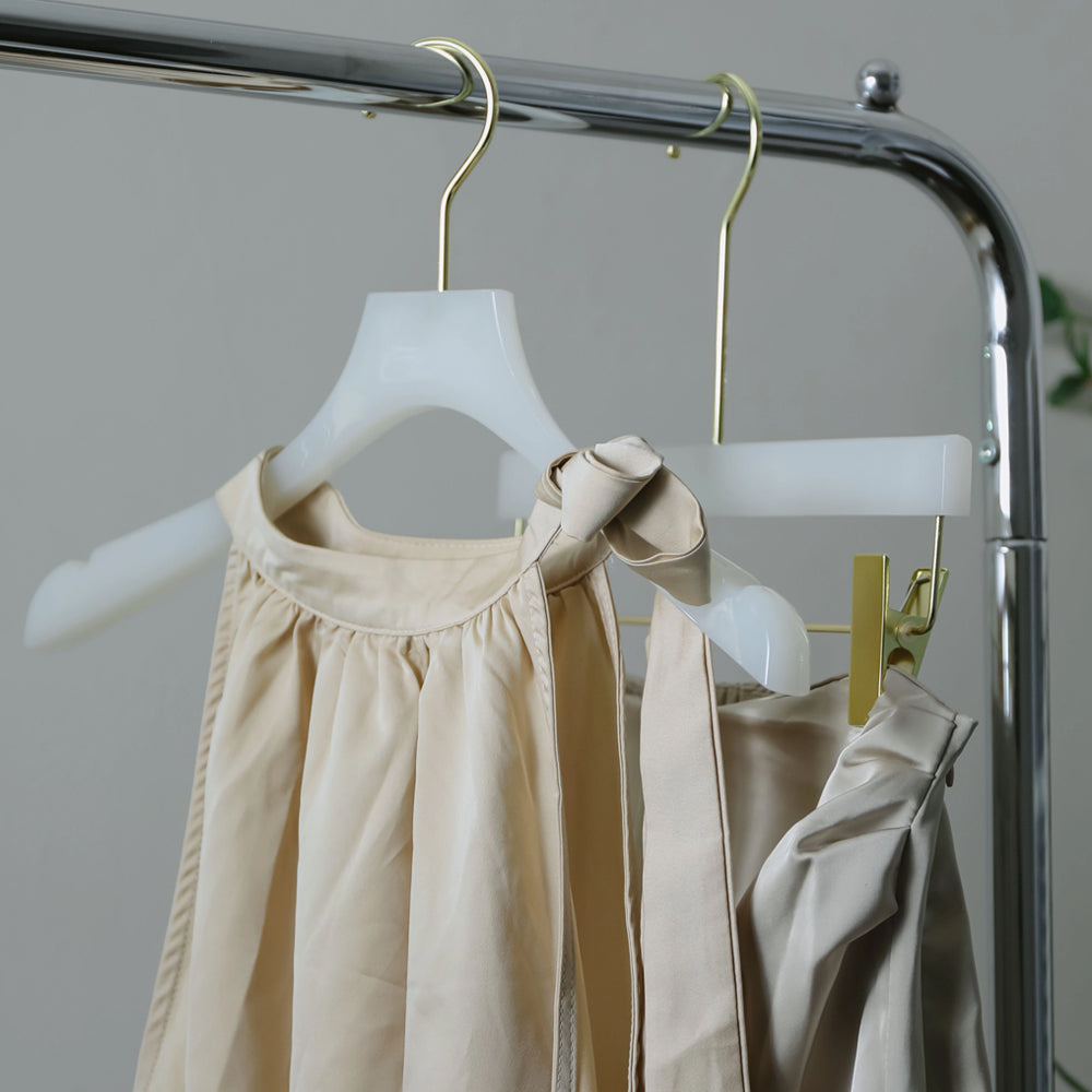 The product is luxury clothing store high quality female fashion and classical clothing hanger modern acrylic hanger, have top hanger and bottom hanger two style for u chioce,also have avant-garde unique accessories ring hanger to meet your different require,the design is very modern and simple,use it to dress up your store can grab customer's attention,use it to dress up your home can make your home become more cozy and gorgeous,use it to display your product or design can get better showing effect.