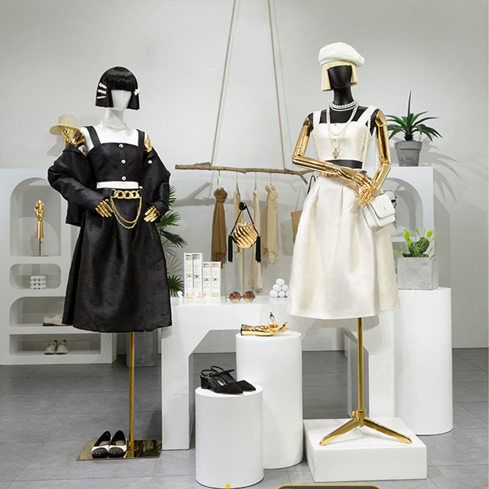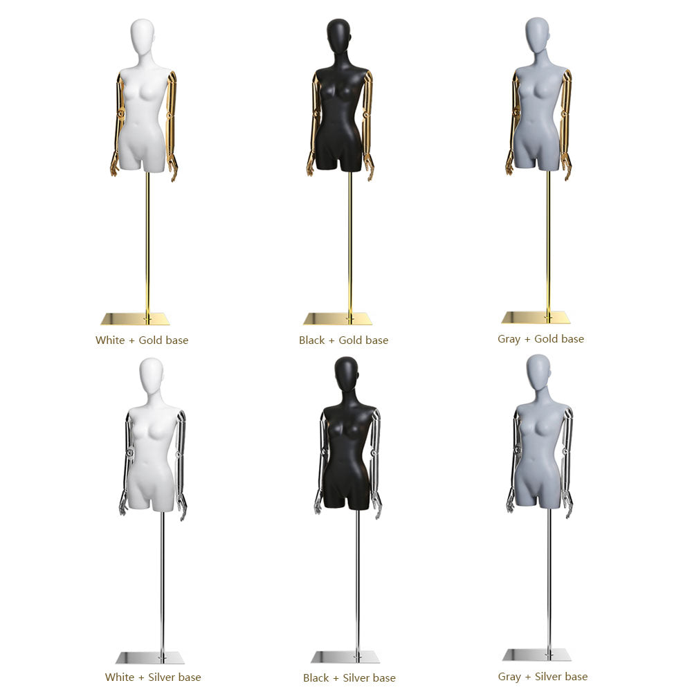 Jelimate Luxury Black White Grey Female Mannequin Torso Silver Gold Arms,Half Body Painting Mannequin Display Dummy,Wedding Dress Clothing Display Dress Form
