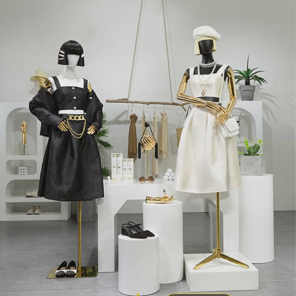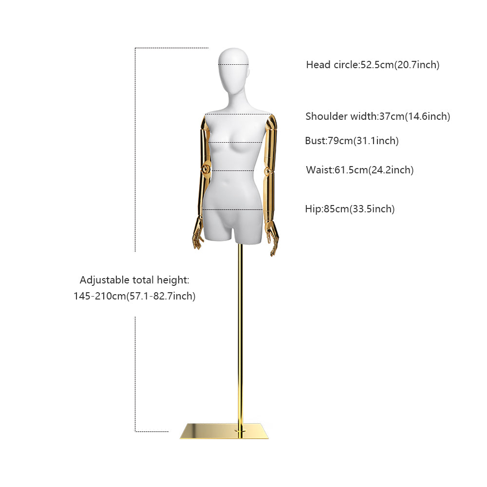 💖Style B: Half Body Mannequin Body+ Head +Gold Hands +Gold Square Base .