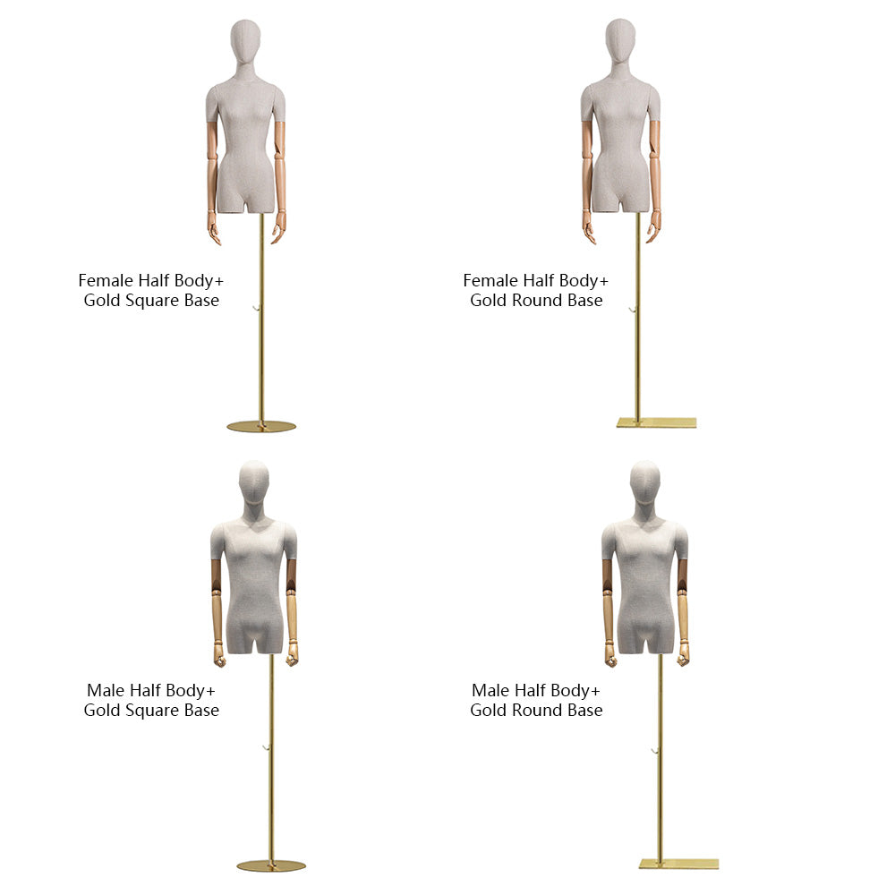 🔥3).These half body mannequins come with two base options: gold square base and gold round base. Each base provides a sturdy foundation while complementing different store aesthetics. Whether you want a modern industrial look with silver or a touch of luxury with gold, these bases allow you to create a tailored visual presentation that enhances the overall shopping experience.