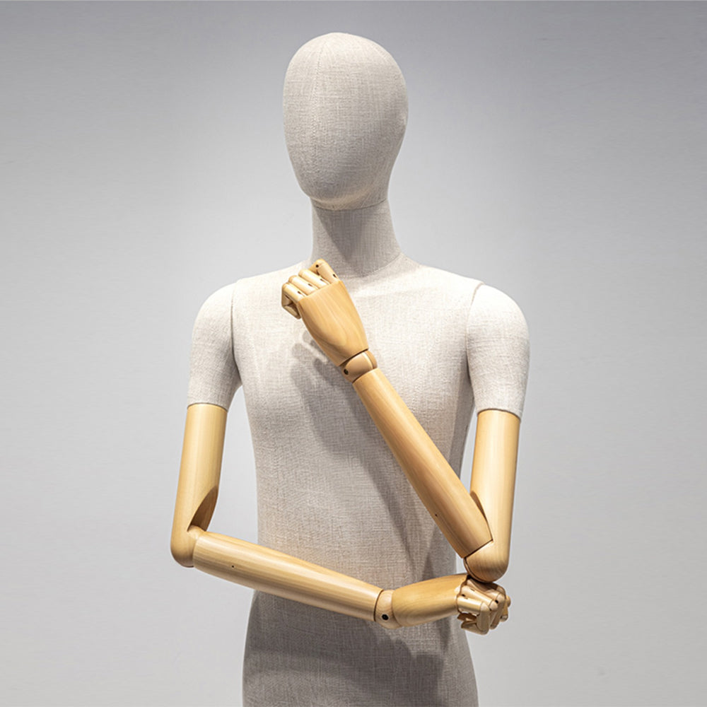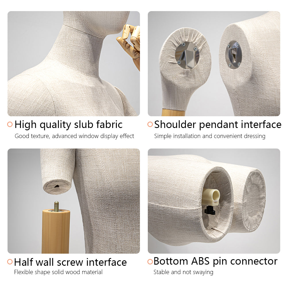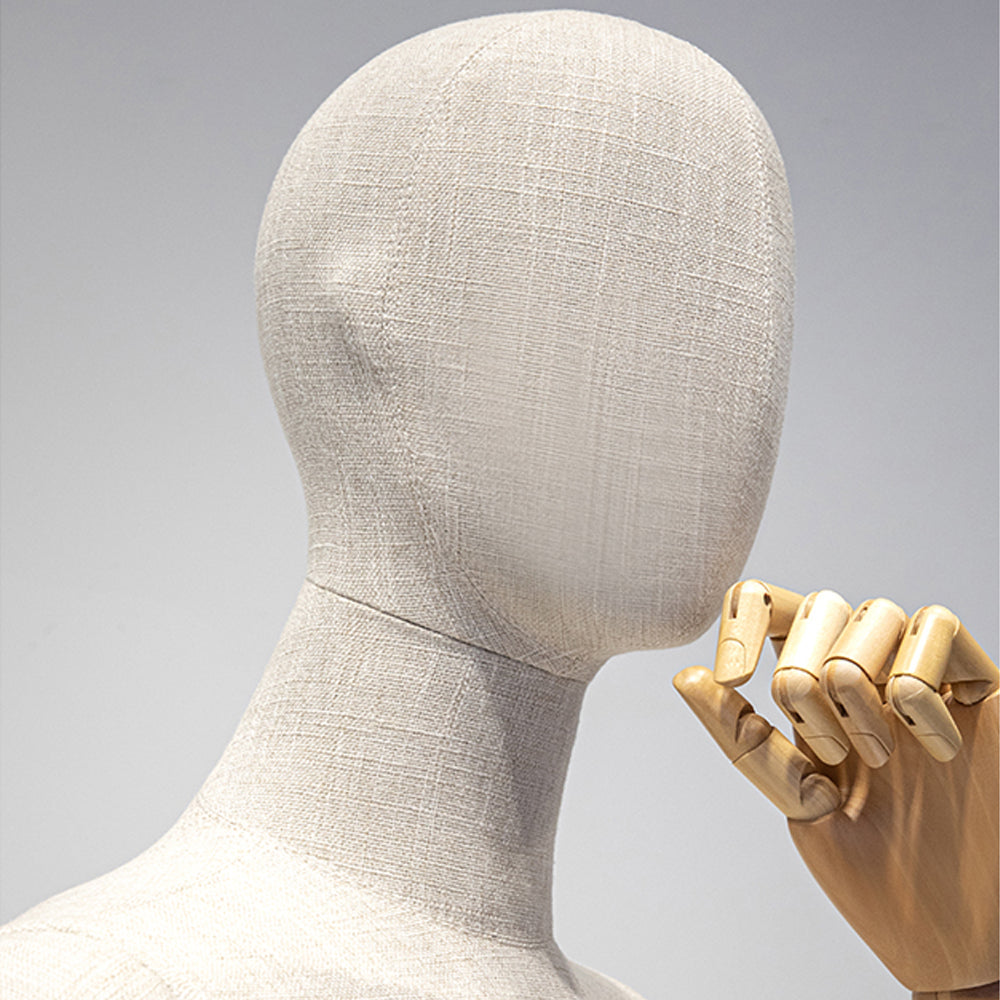 🔥1). Covered in high quality bamboo linen fabric, these mannequins provide a soft, textured surface that enhances the overall display. The elegant material not only elevates the presentation of clothing and accessories but also adds a natural, organic touch that blends seamlessly into luxury retail environments. The fabric wrapping ensures that garments drape beautifully, offering a lifelike and sophisticated display.