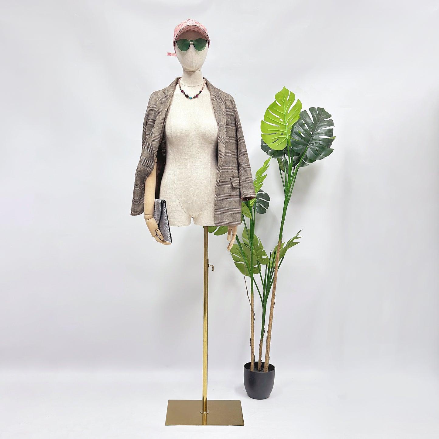 💖Style : Half Body Mannequin +Head +Wooden Hands +Gold Square Base .