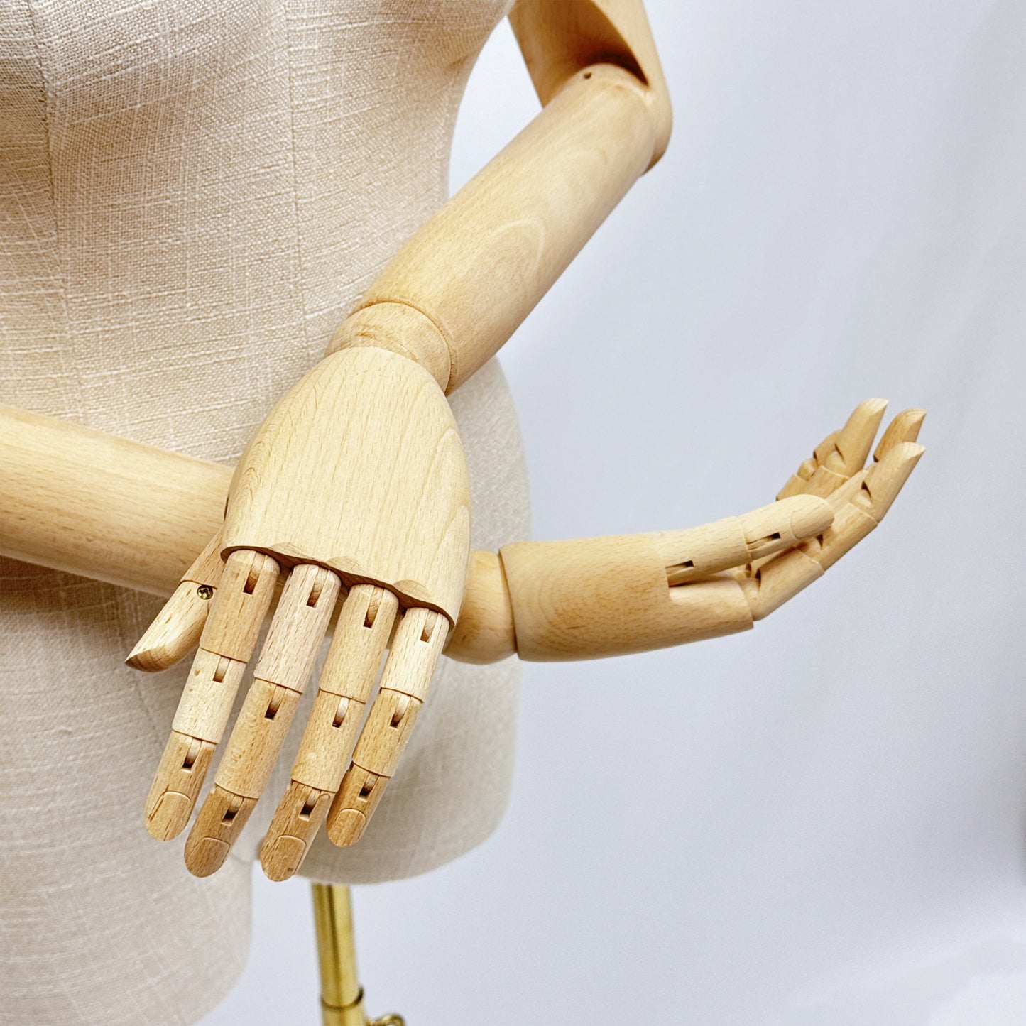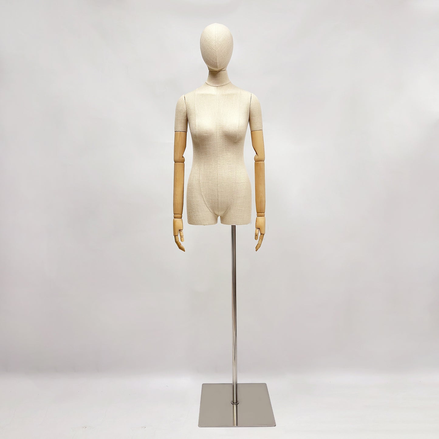 🔥3).Premium Bamboo Linen Fabric: The natural bamboo linen covering provides a luxurious texture and appearance, enhancing the presentation of your apparel and making it the focal point of your boutique.Elegant Wooden Arms: Featuring finely crafted wooden arms, this mannequin adds a touch of elegance, allowing for versatile poses that bring your garments to life.This chic female bamboo linen fabric mannequin torso will add a touch of flair to your boutique,with unique blend of natural textures and stylish details,will turn heads.