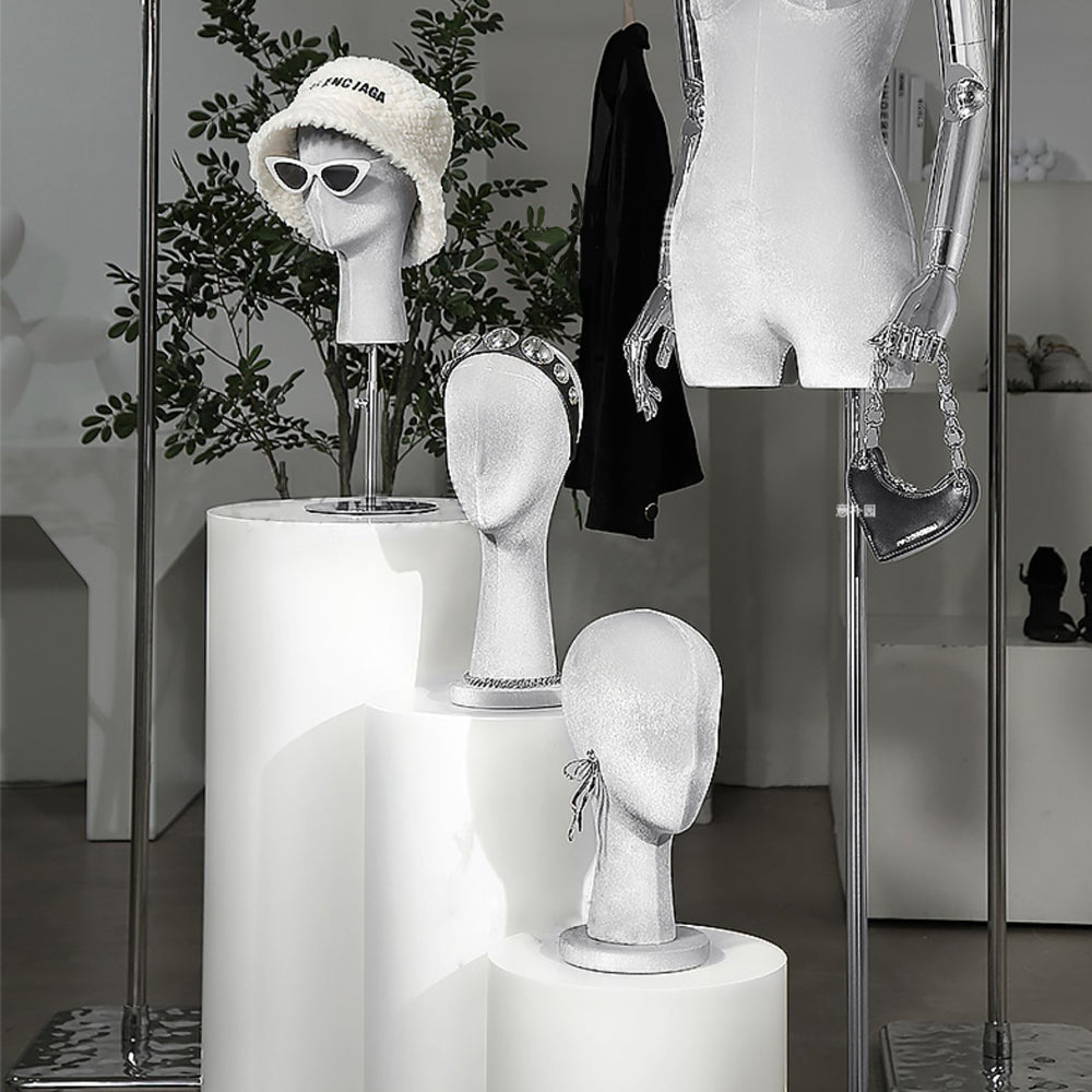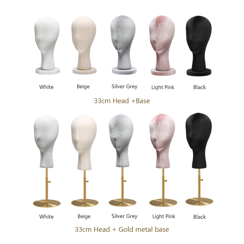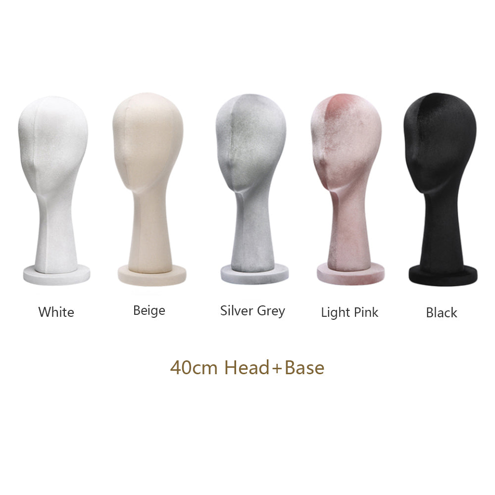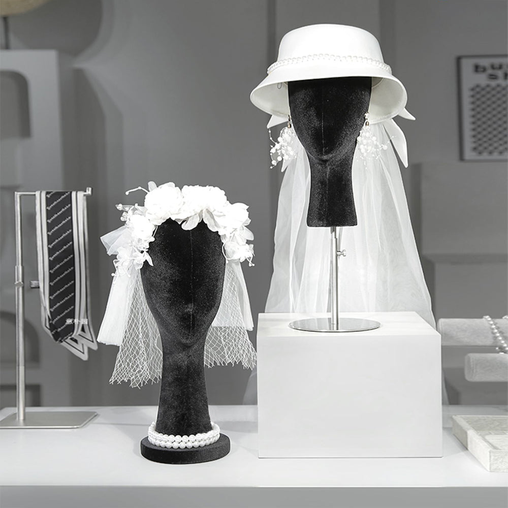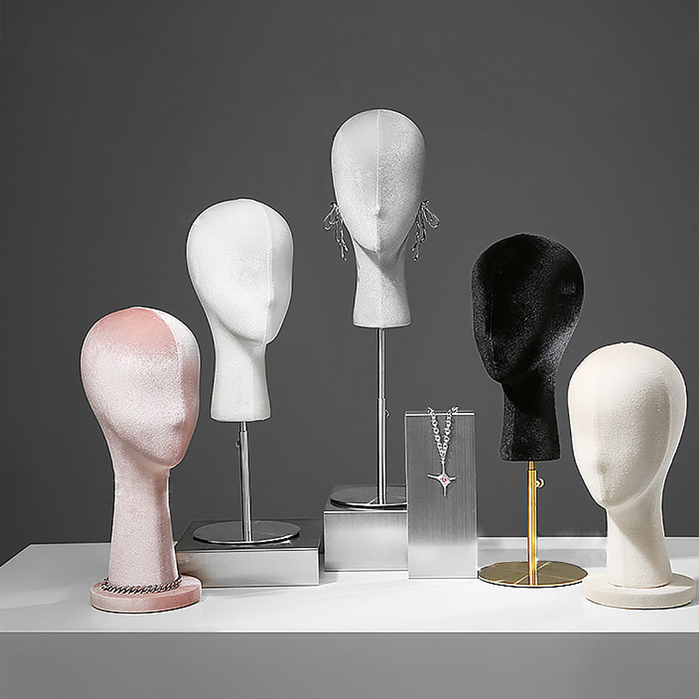 Elevate your boutique store displays with this premium velvet mannequin head. Made from foam material,can fully pinnable. The head is covered in luxurious velvet fabric, providing a soft texture and an upscale appearance that makes any accessory stand out. Featuring a small nose and intricate detailing at the base, it offers a realistic and refined look. Available in a variety of colors, it’s perfect for showcasing hats, wigs, sunglasses, earrings, headband,headphone and more. Whether you're displaying your products in a boutique, for window showcases, or at home, this mannequin head enhances the overall aesthetic of your accessories. Its fine craftsmanship and versatility make it a must-have for anyone looking to create a high-end, stylish presentation for their products.