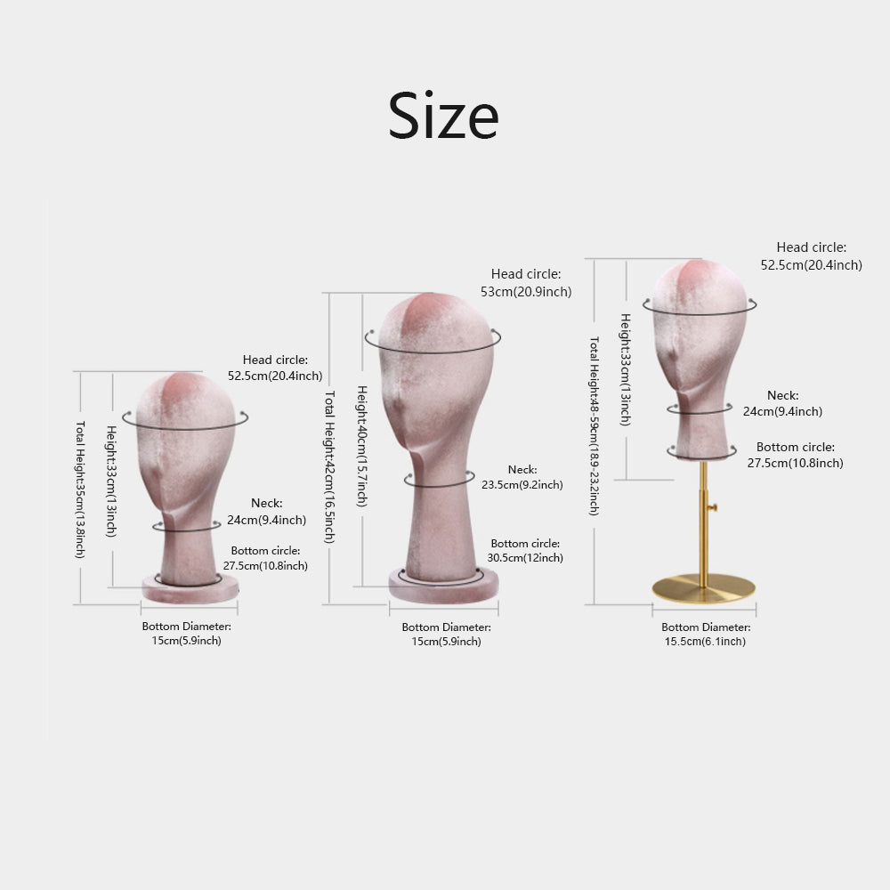 💕Style C: Head Circle: 52.5cm,Neck:24cm,Height of Head:33cm,Adjustable Height: 48-59cm,Head Bottom:27.5cm ,Base Diameter: 15.5cm .