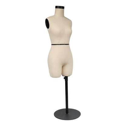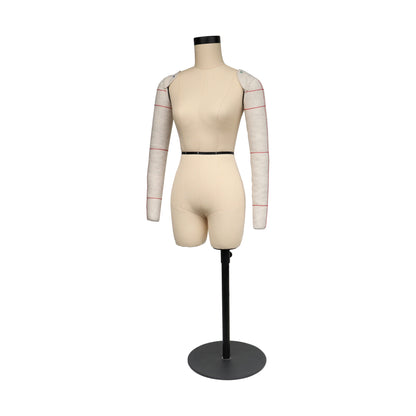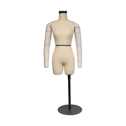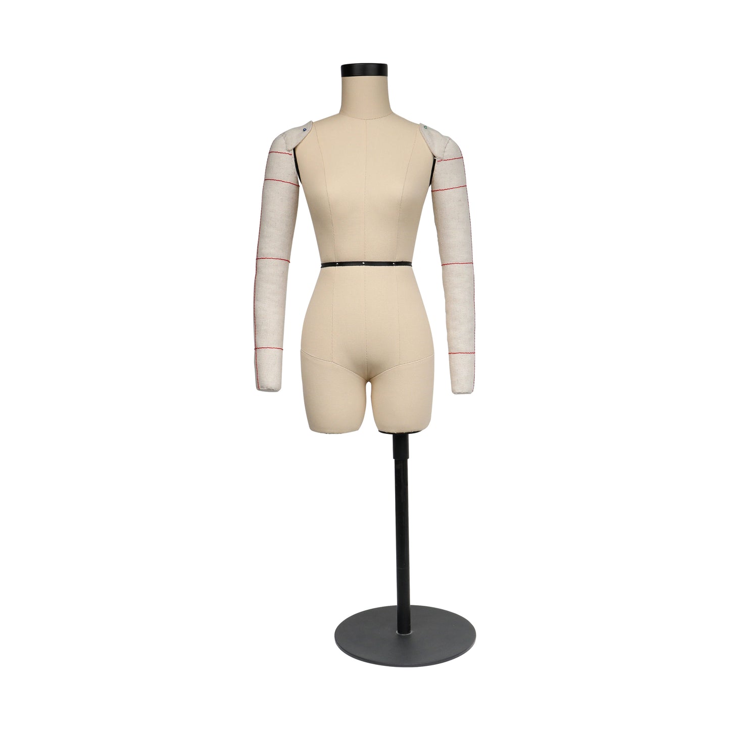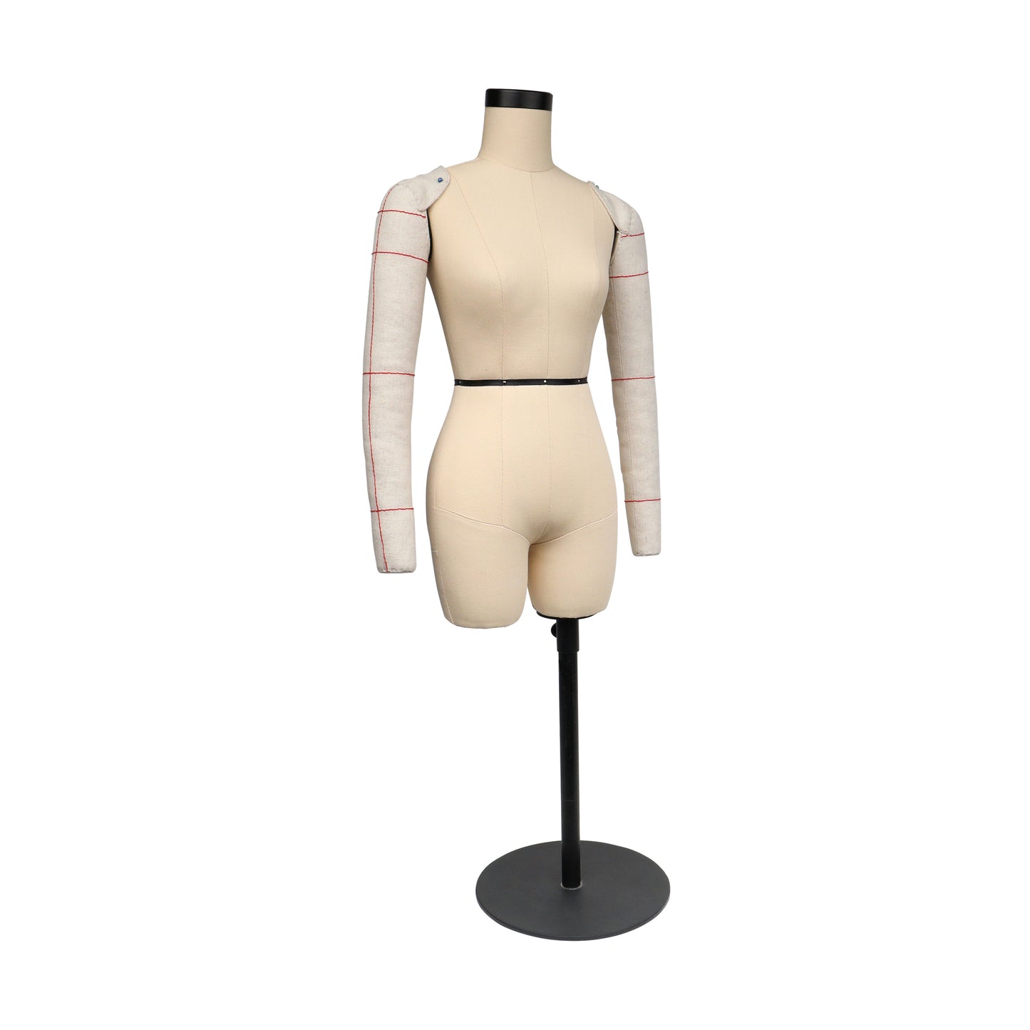 Equipped with bendable, soft arms, this mannequin can achieve realistic human poses. Available in various half-size options (6-20), it meets the needs of both designers and students.