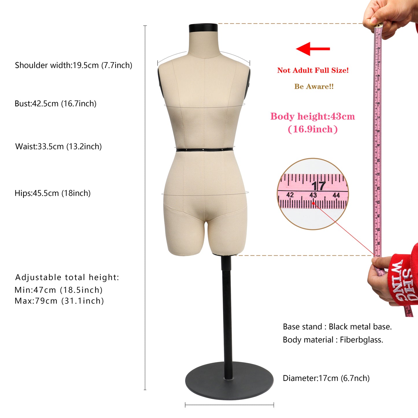 JELIMATE Half Scale Dress Form 1:2 Miniature Mannequin (Size 6)