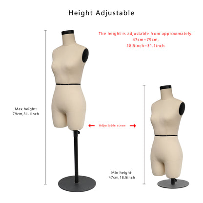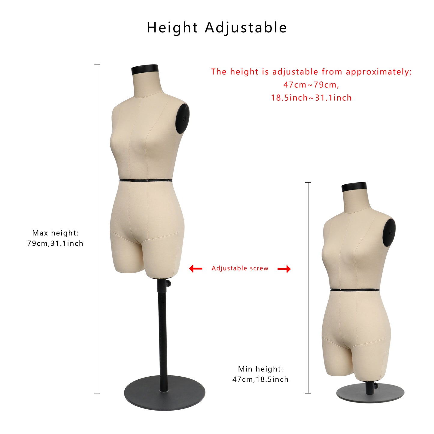 The JELIMATE 1/2 Scale Female Dress Form Size 14 is the perfect companion for fashion students, dressmakers, and designers who need a precise, space-saving mannequin for pattern development and draping work.