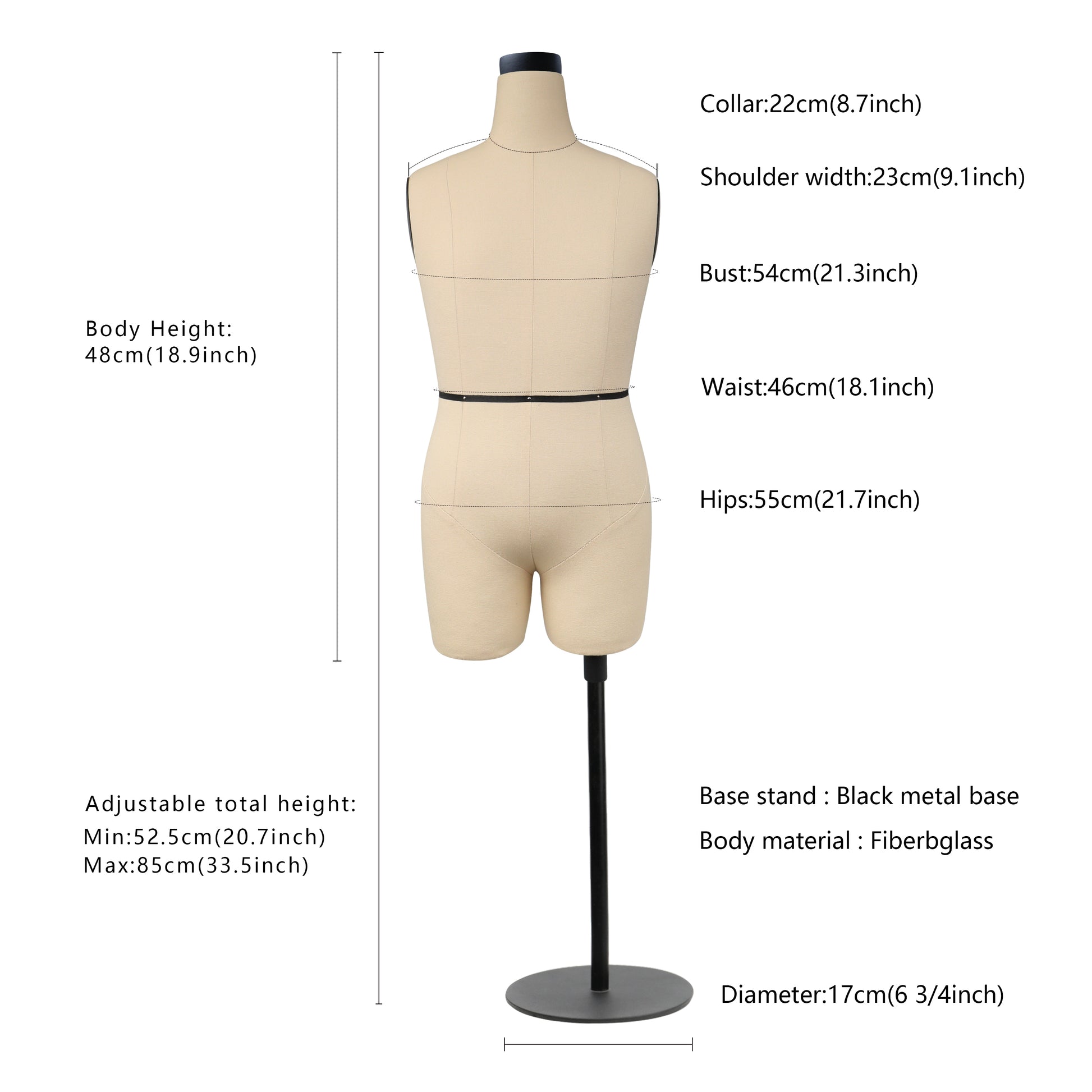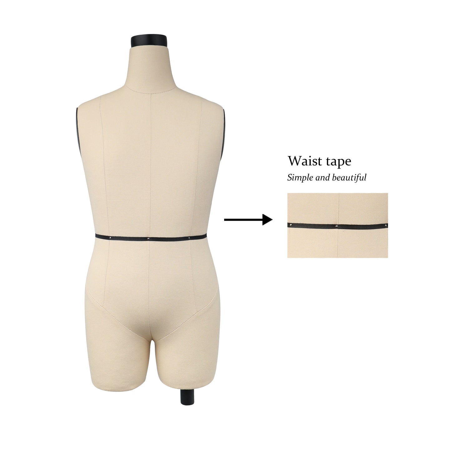 👏7.It can help people to save a lot of fabric material and sewing time compare of full size 1:1 adult garment, As we know before our cloth design come out perfectly and catch customer's eye will take many times, so do the test and see the style what we design again and again, change the color and design draft also can not avoided, designer's work will be complicated, Hence, i make this half scale mannequin, and change the black shoulder cap and neck cover, and use a good fitting fabric to cover it, hope can help more and more designer, hope this items can save designer's time.