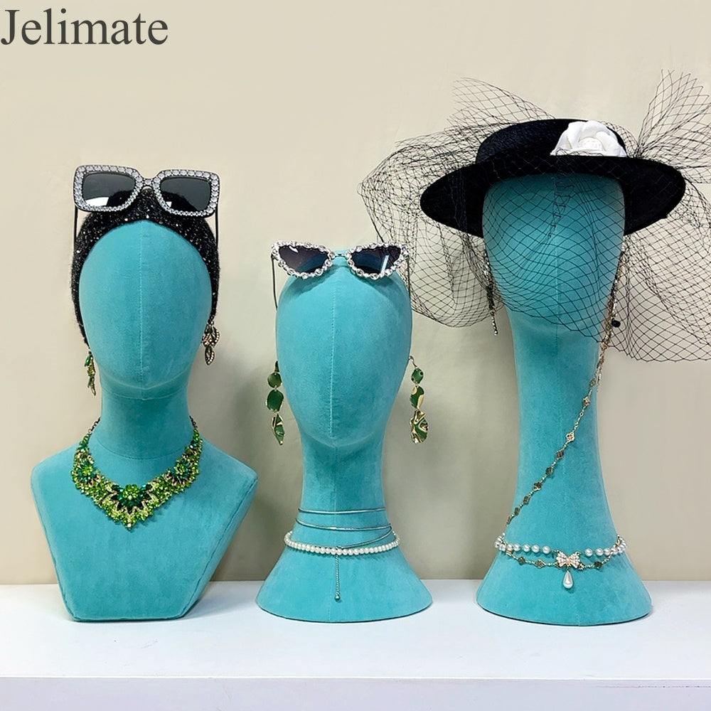 ¡Descubre la cabeza de maniquí de terciopelo y gamuza colorida con cuello largo Jelimate más vendida en las tiendas de gafas de sol!