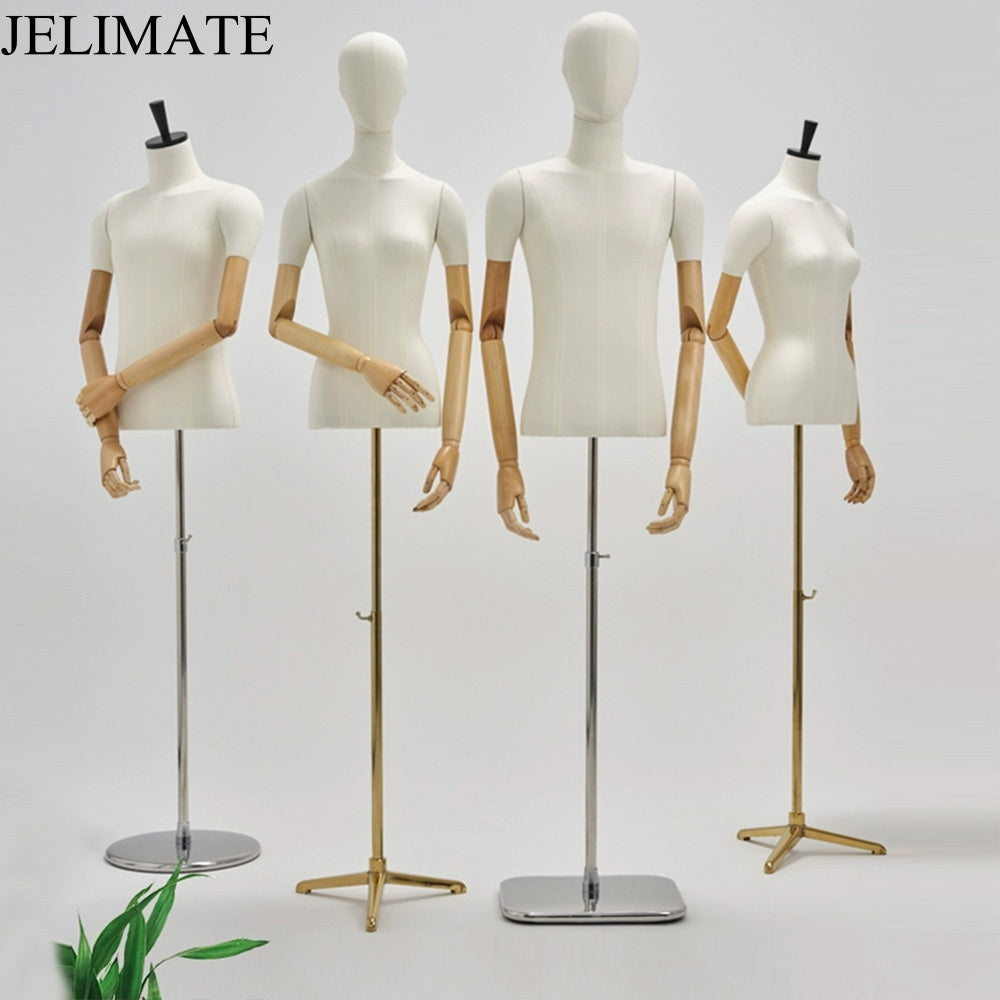 Eleve la exhibición de su tienda boutique con el maniquí femenino masculino de medio cuerpo envuelto en tela de algodón blanco de alta gama Jelimate