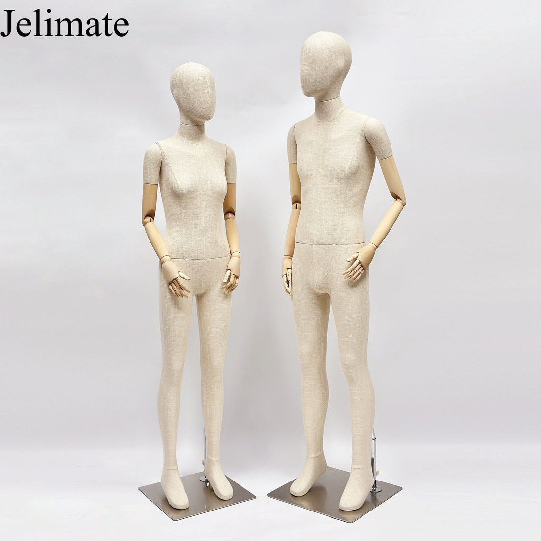 Las manos de madera de primera calidad de los maniquíes de cuerpo entero de bambú y lino de Jelimate para adolescentes, niños y niñas, son más que un simple elemento funcional: son un elemento de diseño que agrega un toque de lujo a sus exhibiciones. El contraste entre el suave lino de bambú y las suaves manos de madera crea interés visual y hace que sus maniquíes se destaquen. Este diseño de alta gama eleva el ambiente general de su boutique, dándole a su tienda un aspecto refinado y elegante.