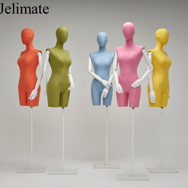 Además, los maniquíes femeninos de medio cuerpo de tela de lino de alta gama de Jelimate con brazos de madera blanca son cruciales para exhibiciones de escaparates efectivas. Una ventana bien diseñada con estos elegantes maniquíes puede atraer a los transeúntes y tentarlos a ingresar a la tienda. En el comercio minorista, las primeras impresiones importan; una exhibición de escaparate atractiva y estéticamente agradable puede ser la clave para convertir el tráfico peatonal en ventas.