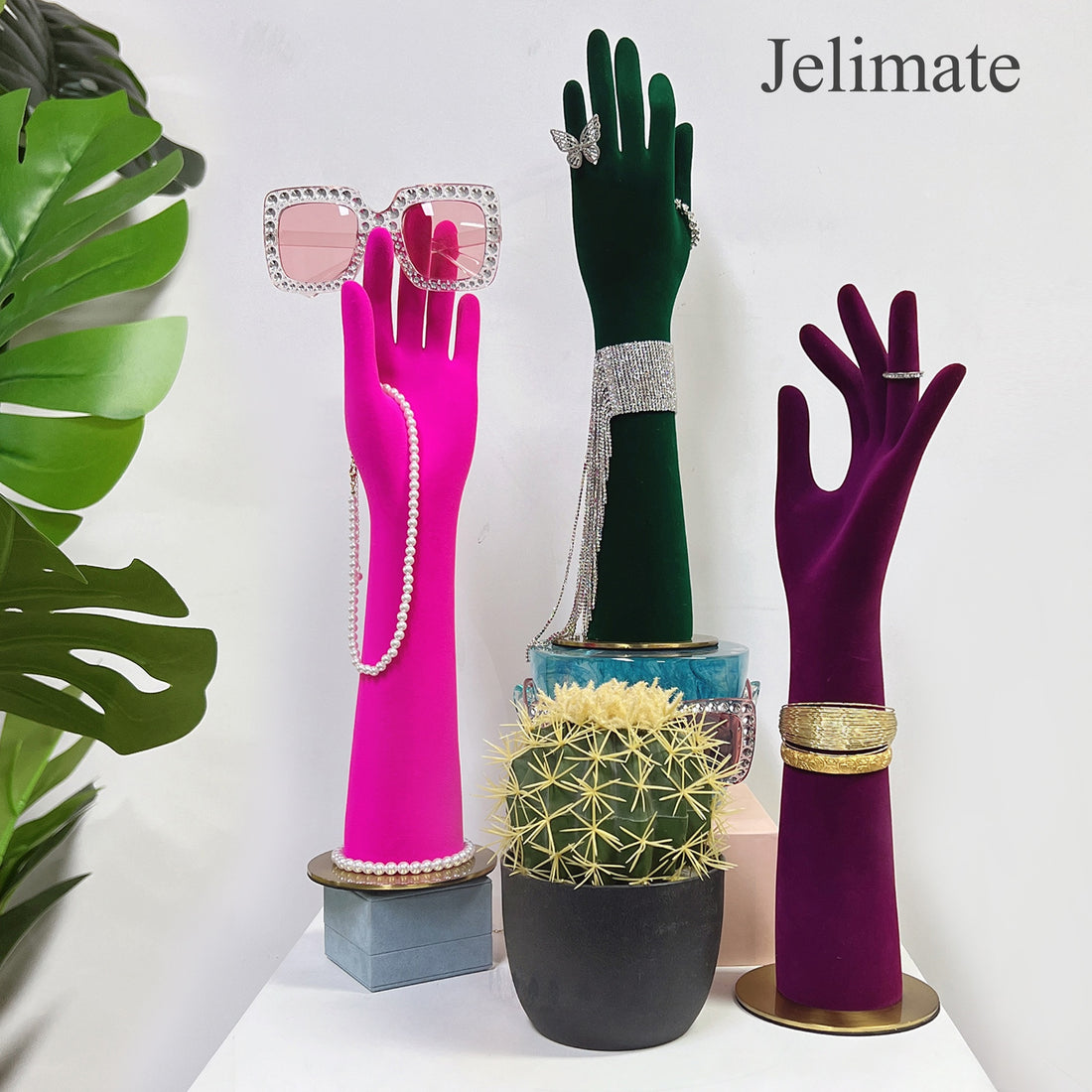 Bueno, amigo mío, la respuesta es sencilla: se trata de crear una experiencia de compra memorable e inmersiva. Cuando los clientes entran en una joyería de alta gama, esperan nada menos que la perfección. Quieren quedar sorprendidos, cautivados y encantados por la belleza de las joyas en exposición. ¡Y eso es exactamente lo que ofrece la mano del maniquí revestida de terciopelo de color!