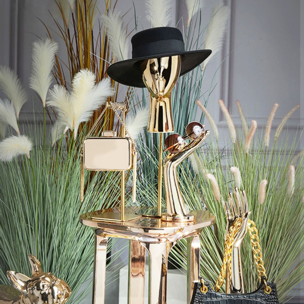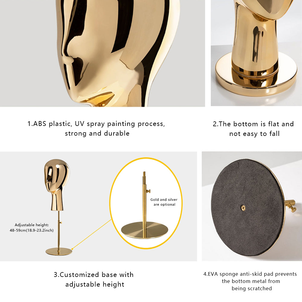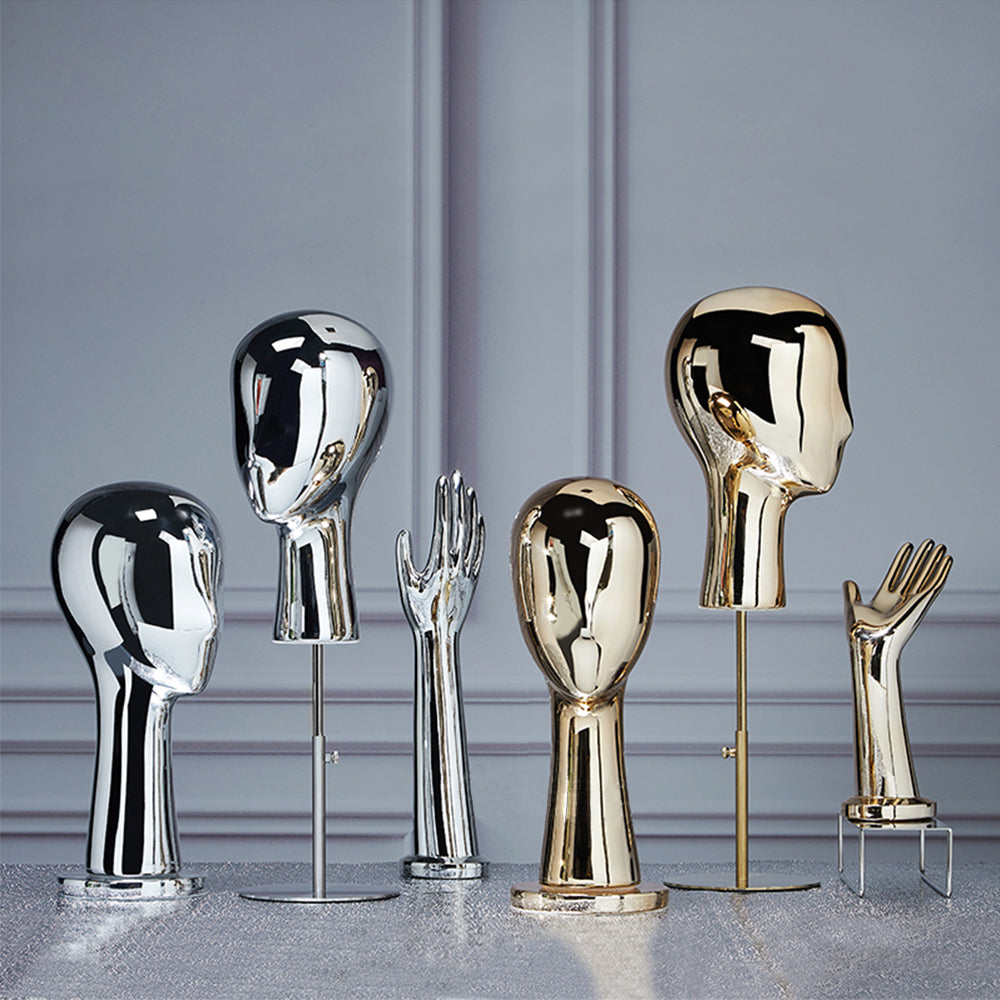 Torso de maniquí con cabeza de cromo, plata y oro de Jelimate, placa para exhibición de vestidos, cabeza de maniquí para peluca, sombrero, gafas de sol, modelo de exhibición de joyas