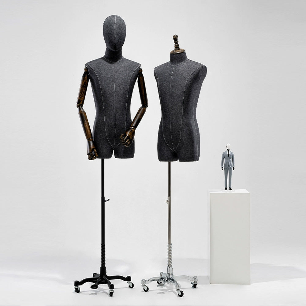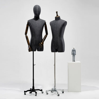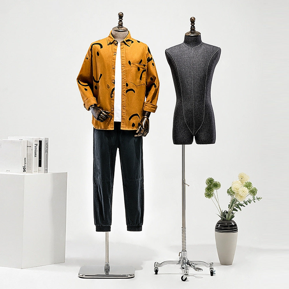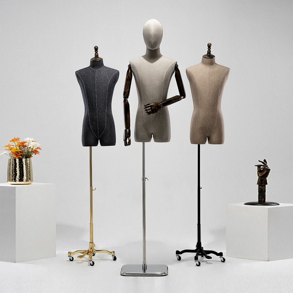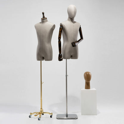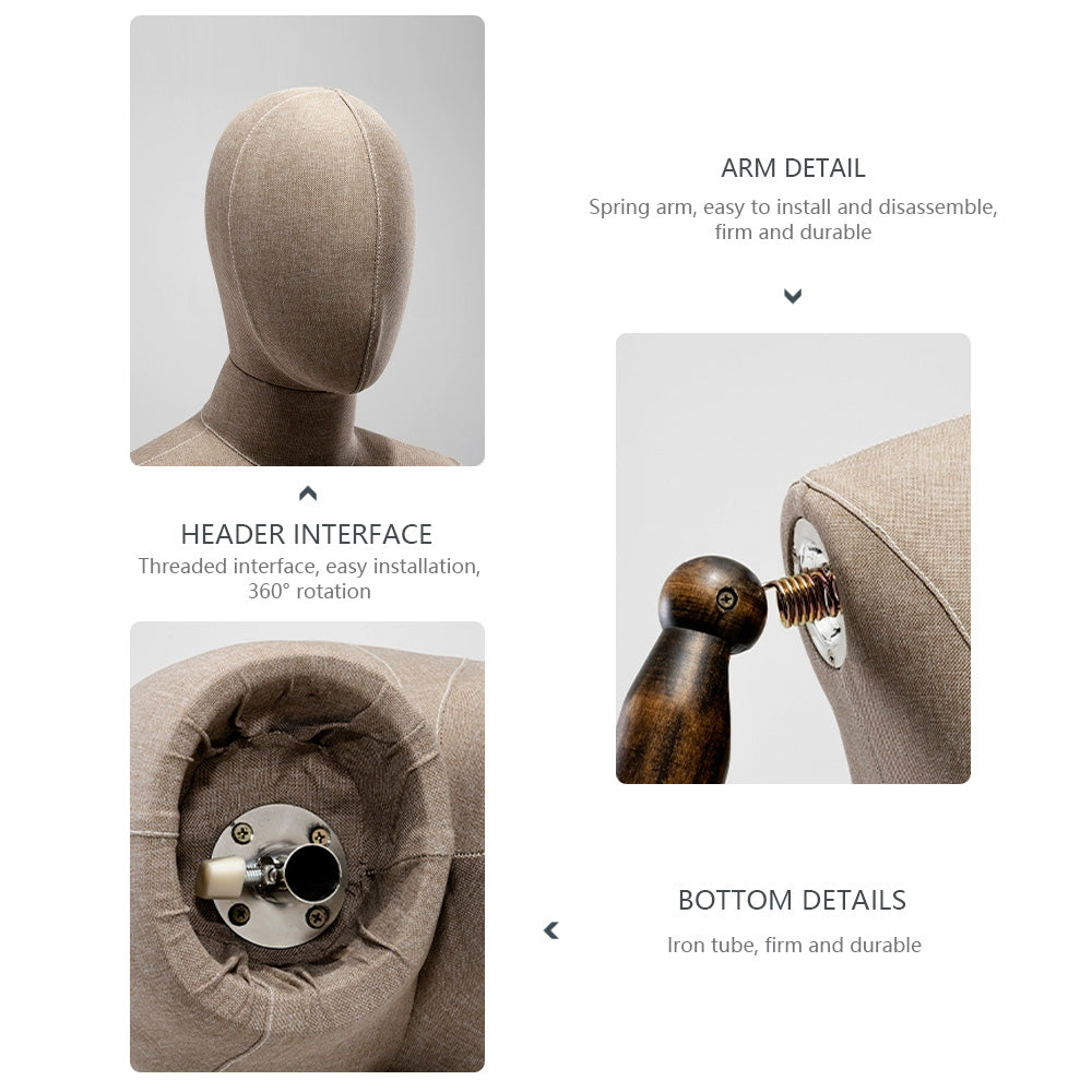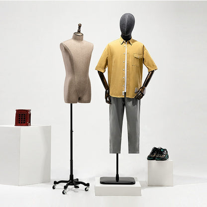 👍1). El maniquí masculino está hecho de materiales de fibra de vidrio de alta calidad, que han sido cuidadosamente seleccionados por su composición y confiabilidad; Tela de lino engrosada seleccionada, una textura moderna y connotativa, que busca la excelencia y el estilo informal.