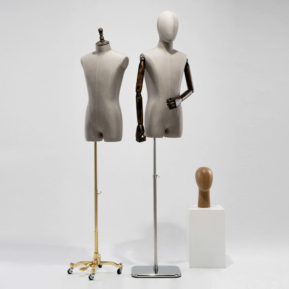 👍3) El maniquí masculino de medio cuerpo tiene un estilo que refleja perfectamente la silueta de la ropa y enriquece el efecto visual general. La interfaz abdominal de ABS se puede abrir o cerrar y es fácil de instalar. La interfaz del brazo de resorte es fácil de instalar. El brazo de madera maciza tiene una variedad de formas. Respetuoso con el medio ambiente, simple, regreso a la naturaleza.