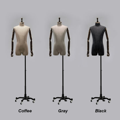 💟Estilo: Cuerpo de maniquí masculino + gorro de madera + brazos de madera + base con ruedas negra
