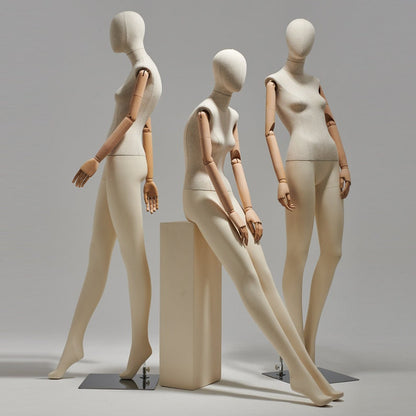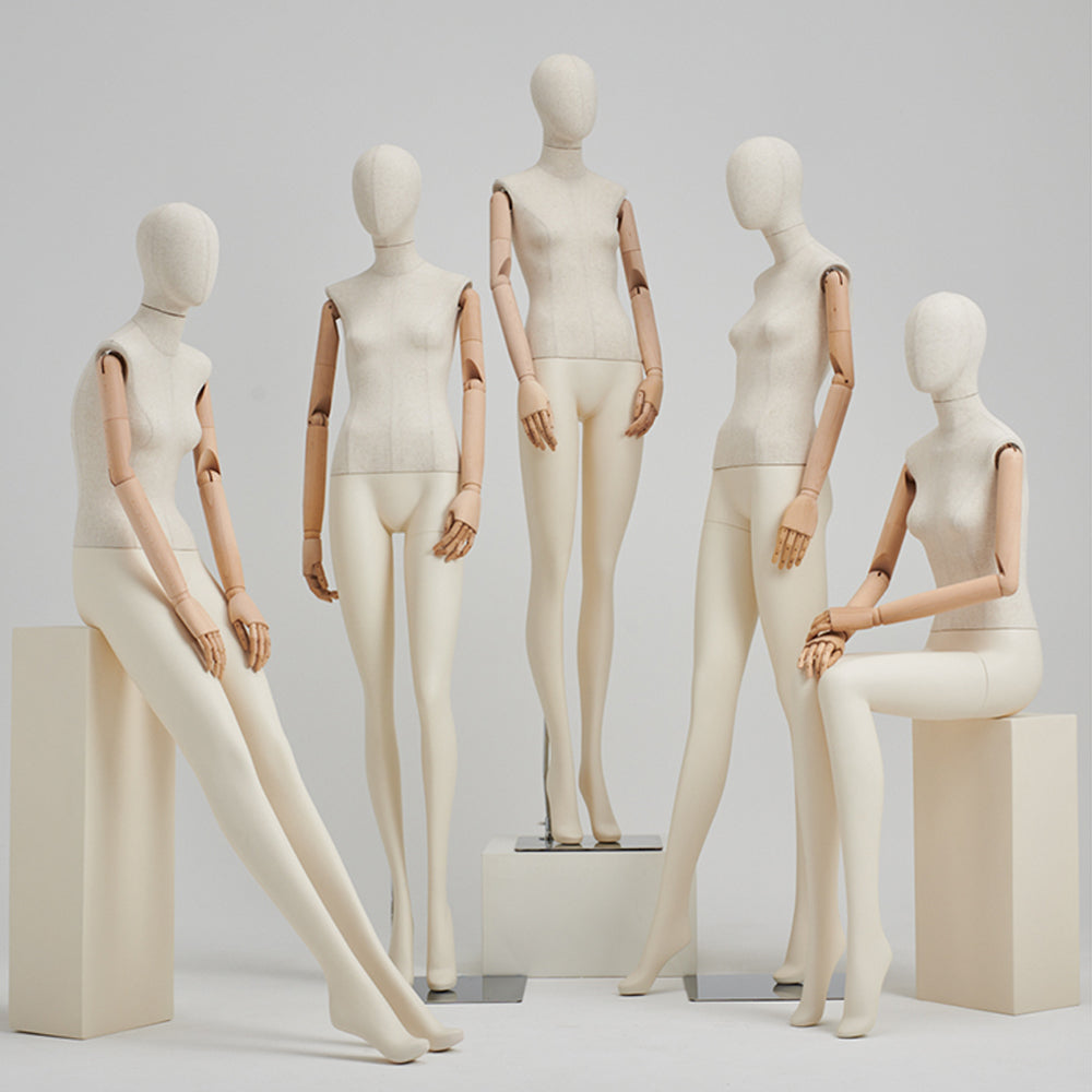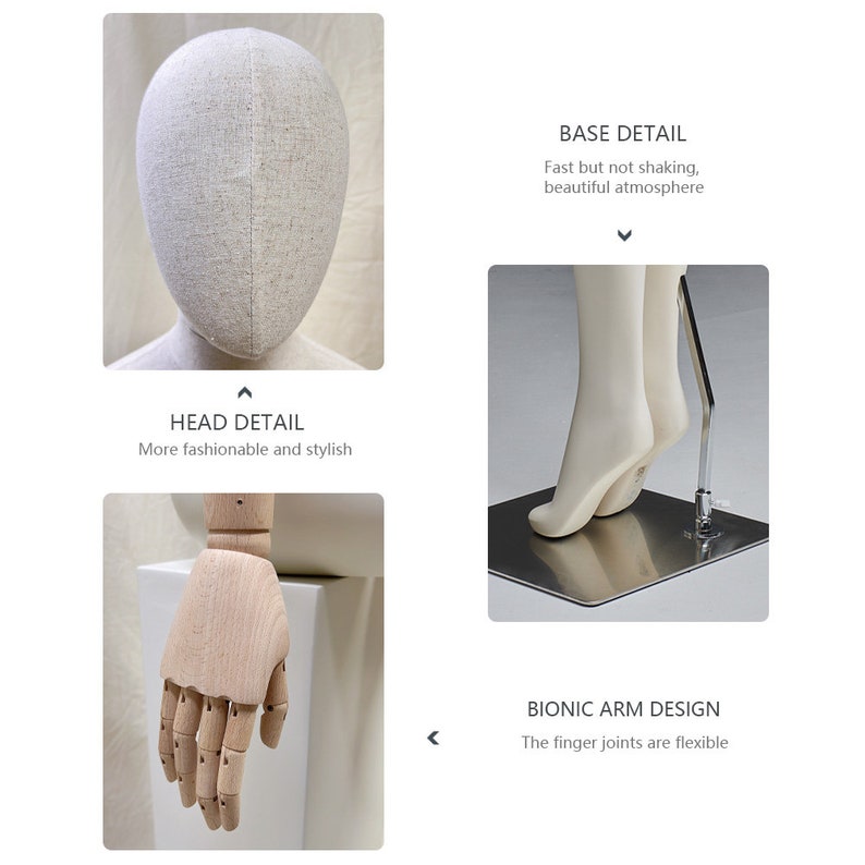 Maniquí de cuerpo entero para mujer de Jelimate Boutique Store, maniquí de cuerpo entero para hombre, maniquí de lino y bambú, maniquí de exhibición de ropa de lujo con brazos de madera