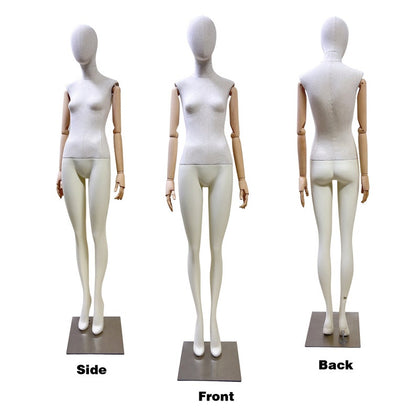 💋Maniquí femenino de cuerpo completo: maniquí femenino de cuerpo completo de pie + cabeza + brazos de madera + base cuadrada plateada;