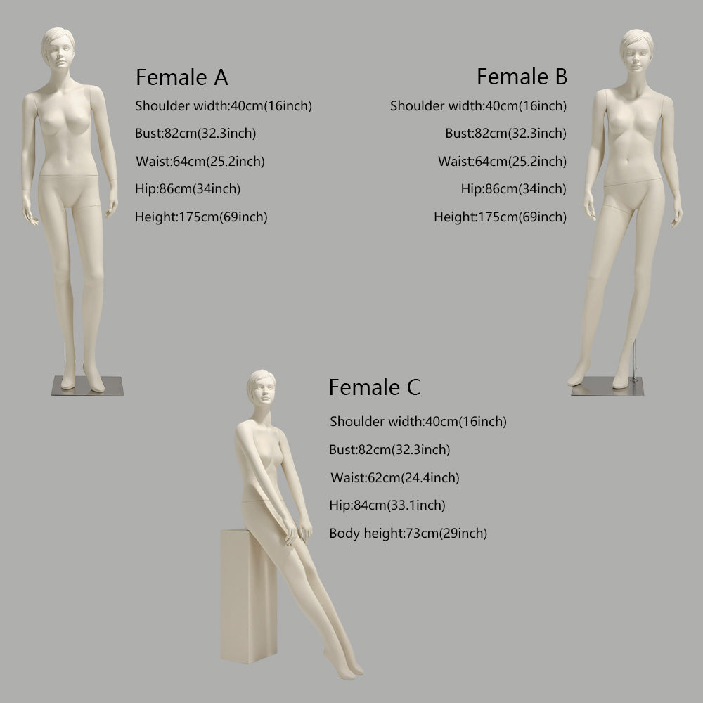 💖JE-0246A (Mujer de pie de cuerpo entero): Ancho de hombros: 40 cm (16 pulgadas), Busto: 82 cm (32,3 pulgadas), Cintura: 64 cm (25,2 pulgadas), Cadera: 86 cm (34 pulgadas), Altura: 175 cm (69 pulgadas);
