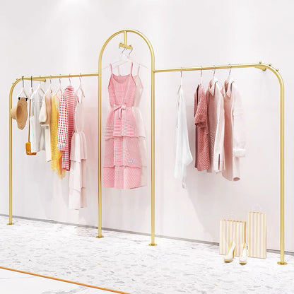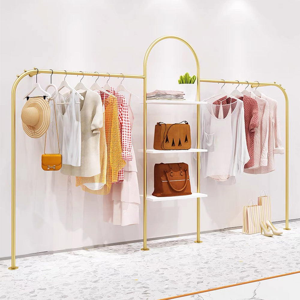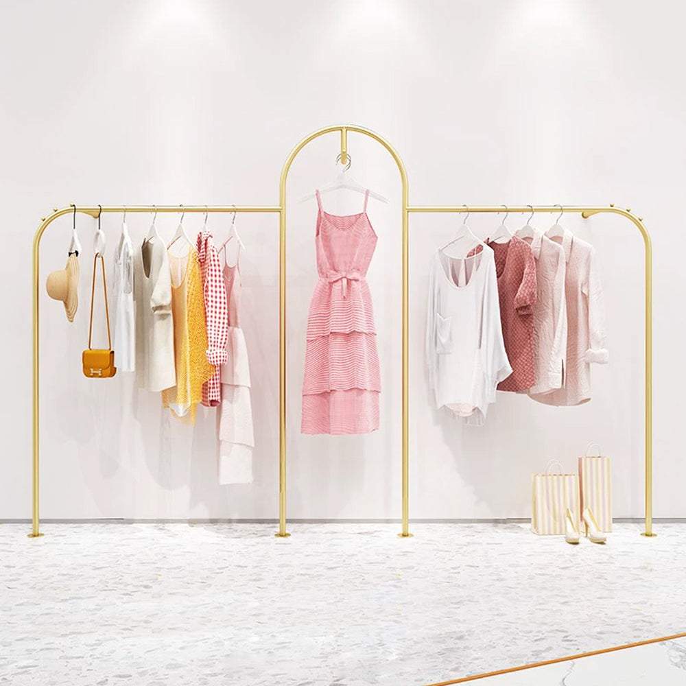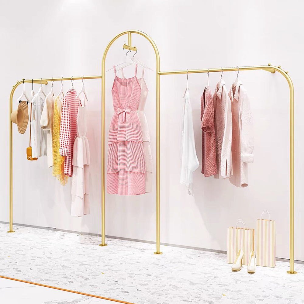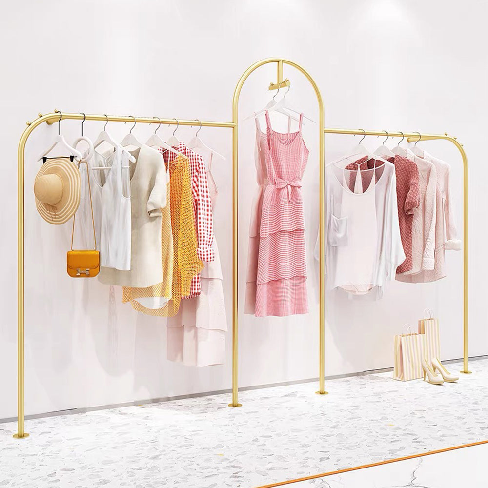 Perchero de exhibición de ropa con arco dorado de 200 cm de altura de Jelimate, estante colgante para ropa, estante para exhibición de ropa de pared, decoración de tiendas, muebles para boutiques