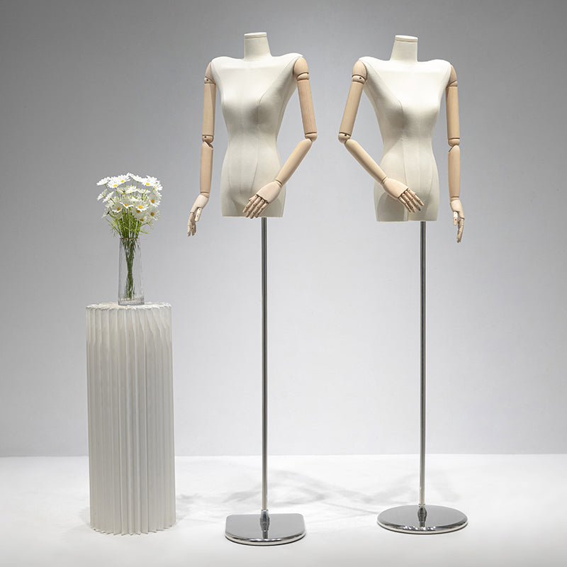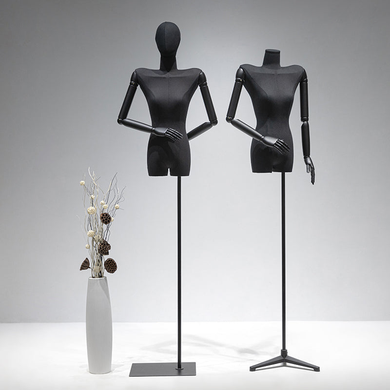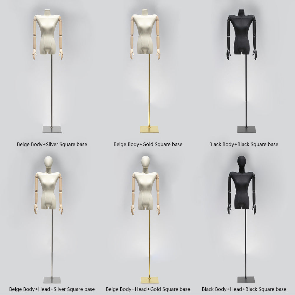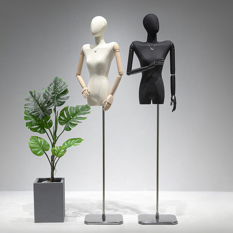 Este es un maniquí de exhibición de medio cuerpo envuelto en tela de calidad de moda para mujeres adultas para usar en exhibiciones de tela en ventanas. Puede usarlo para exhibir sombreros, ropa de lujo, bufandas y pantalones.