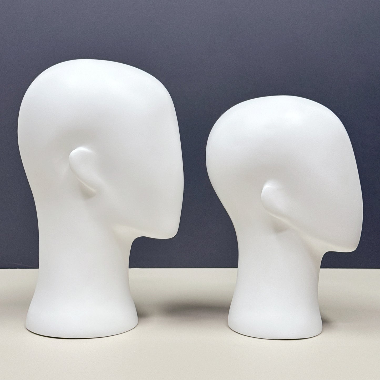 Maniquí de cabeza de fibra de vidrio para hombre y mujer, color blanco, con sombrero, gafas, máscara, gorra, diadema, auriculares para boda, joyas, bufanda, peluca, cabeza de exhibición