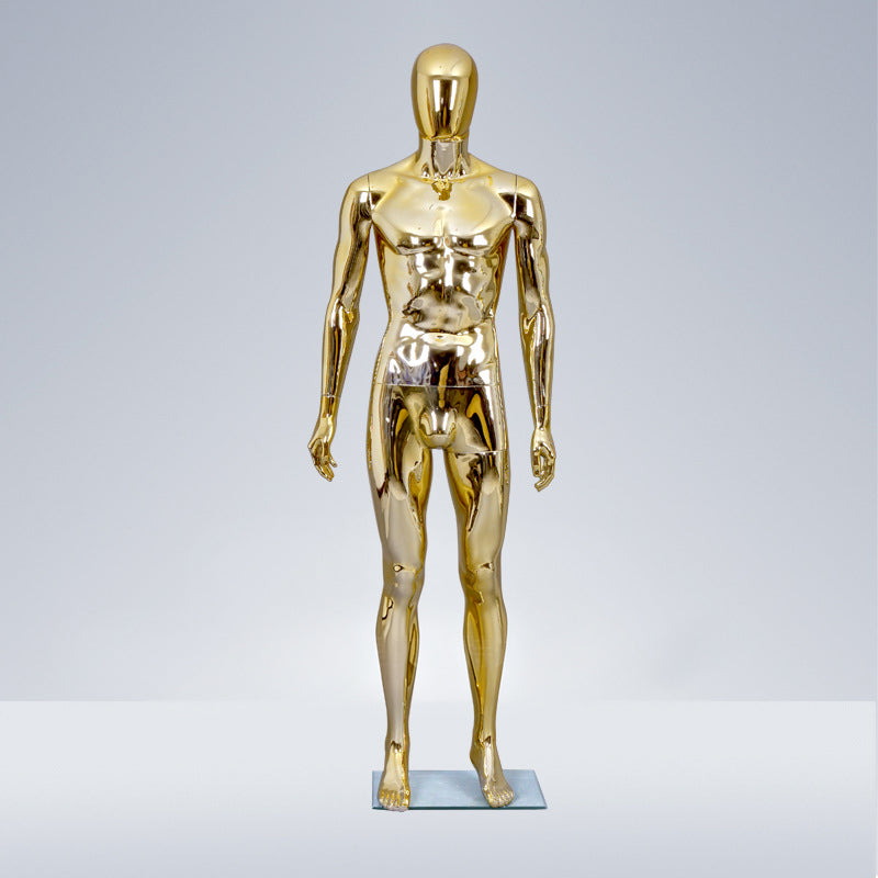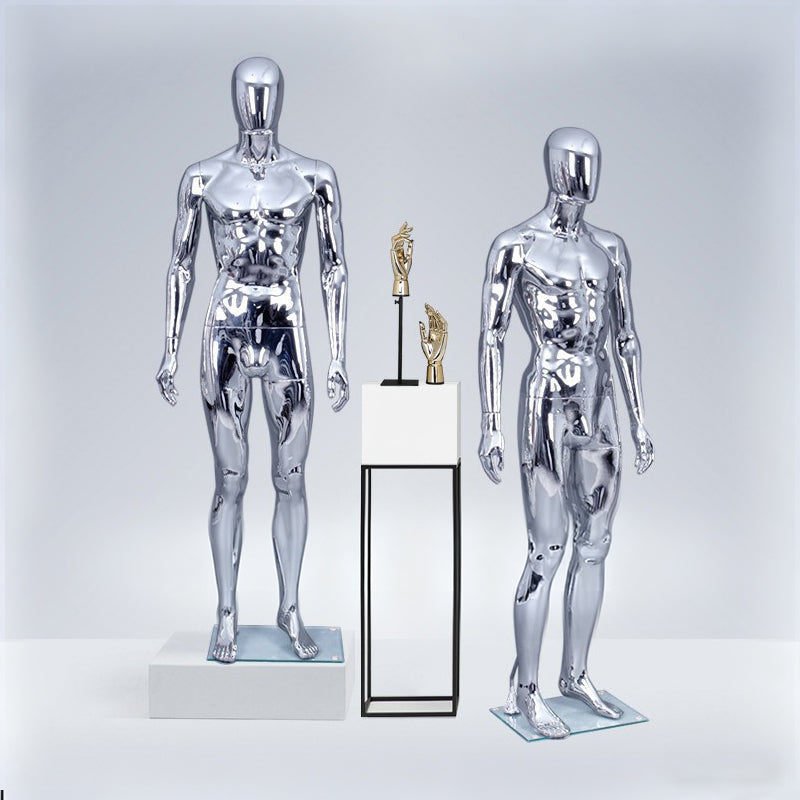Maniquí masculino profesional galvanizado con un versátil diseño de cabeza redonda y rotación de 360 grados. Perfecto para escaparates de alta gama y tiendas que exhiben ropa masculina.