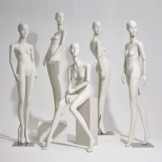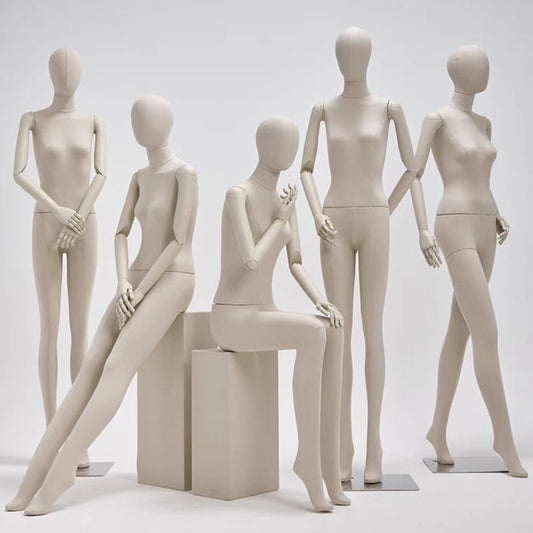 Available in a variety of materials such as fiberglass, plastic, and foam, and dressed in fabrics like linen, suede, satin, or velvet, each mannequin combines durability with aesthetic flexibility to match your brand's visual style.