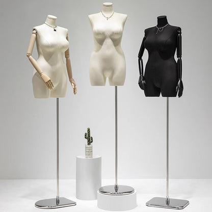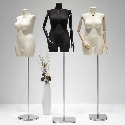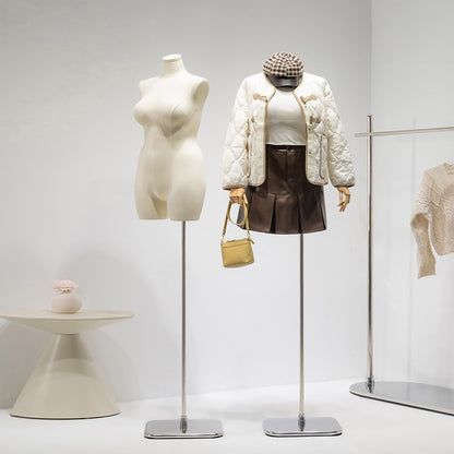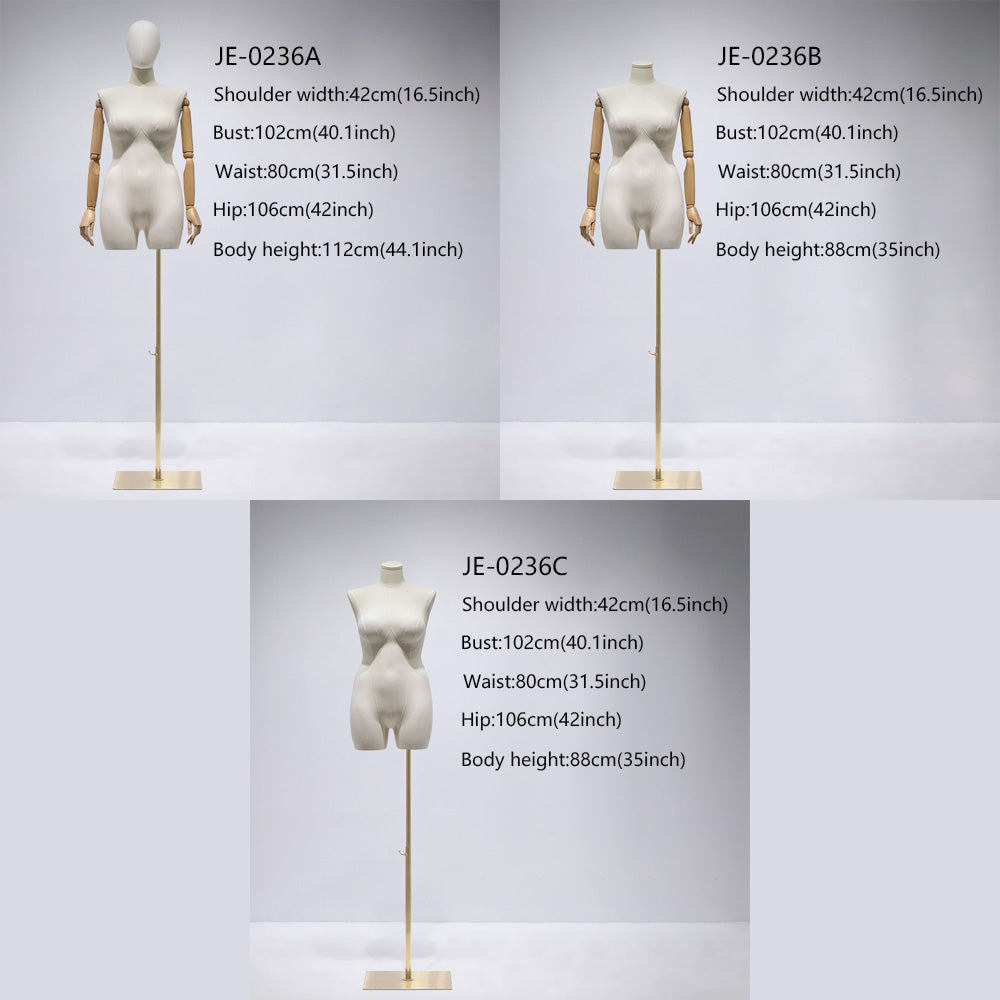This is our new fashion plus size female display mannequin, using our plus size female torso mannequin to display plus size clothing is an excellent choice for boutique clothing stores. These mannequins provide a realistic and flattering representation of how the clothing will look on a curvier figure, helping customers visualize the fit and style more accurately. They enhance the shopping experience by showcasing the beauty and elegance of plus-size fashion, ensuring that every customer feels confident and represented when browsing through the store's offerings.