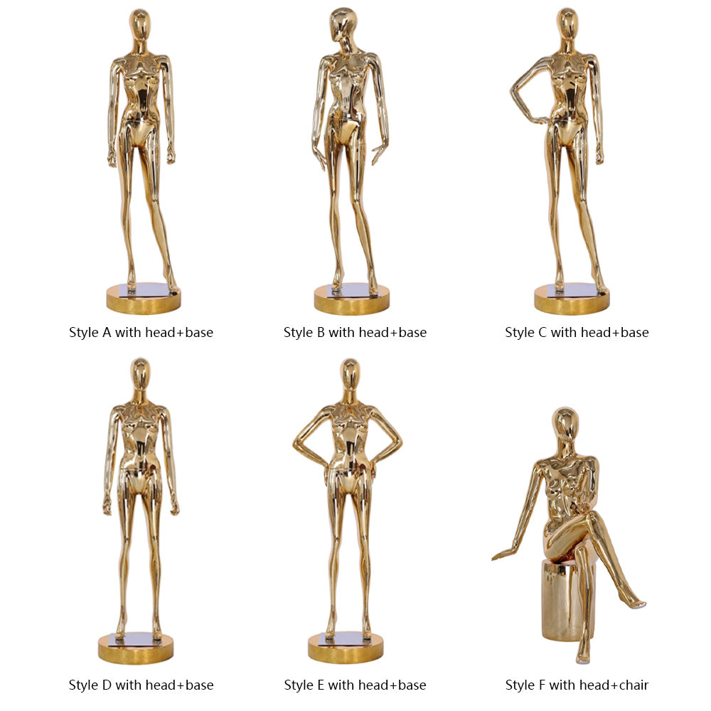 Gold Slim Plated Female Mannequin - Full Body Display | 6 Styles Available